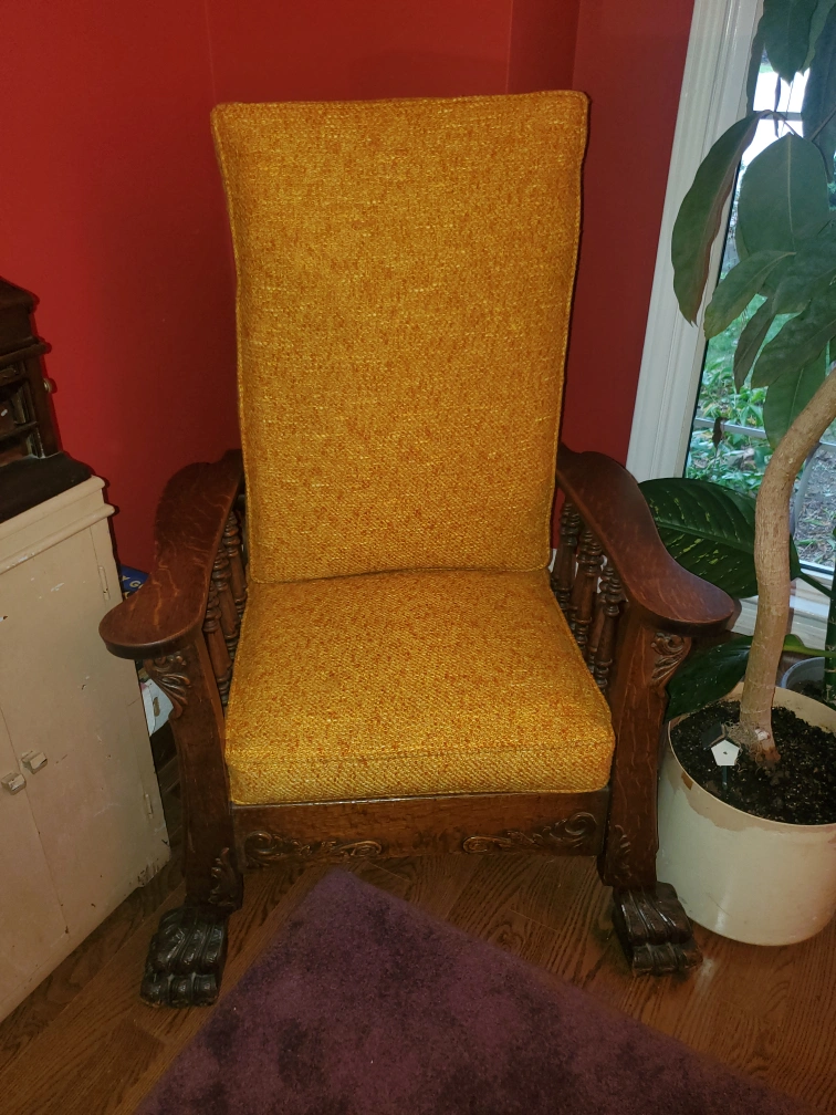 This is for an antique quarter cut oak chair from the early 1900s, it comes with the cushion and has large Claw Feet in very good condition.