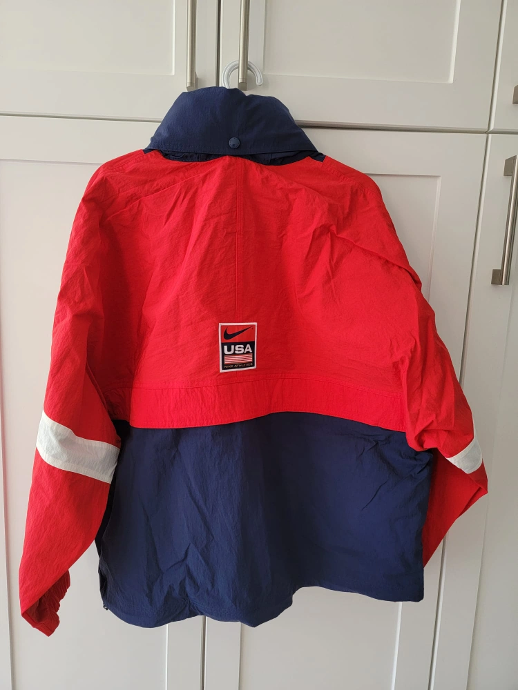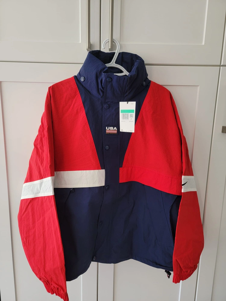 Men's Nike casual jacket, size XL. Red, white, and navy colour block design. Features a USA logo. New with tags.