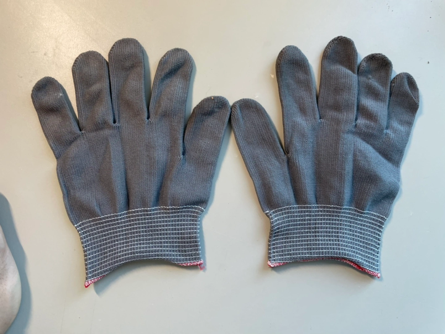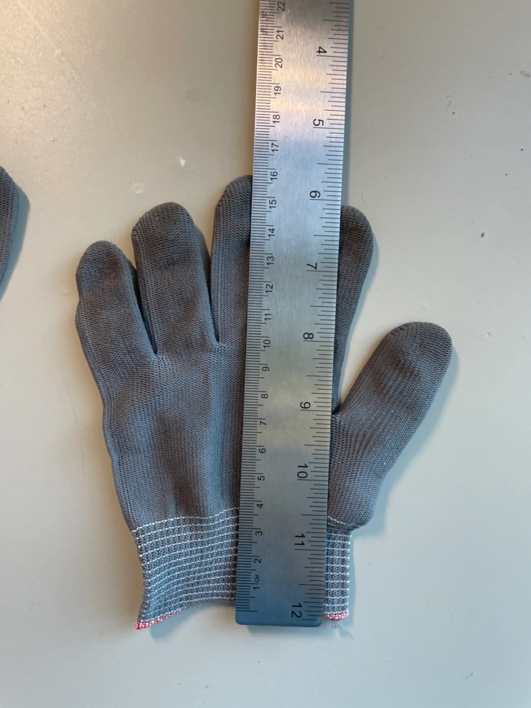 Lightweight grey knit gloves. Good for light-duty tasks. Small size.