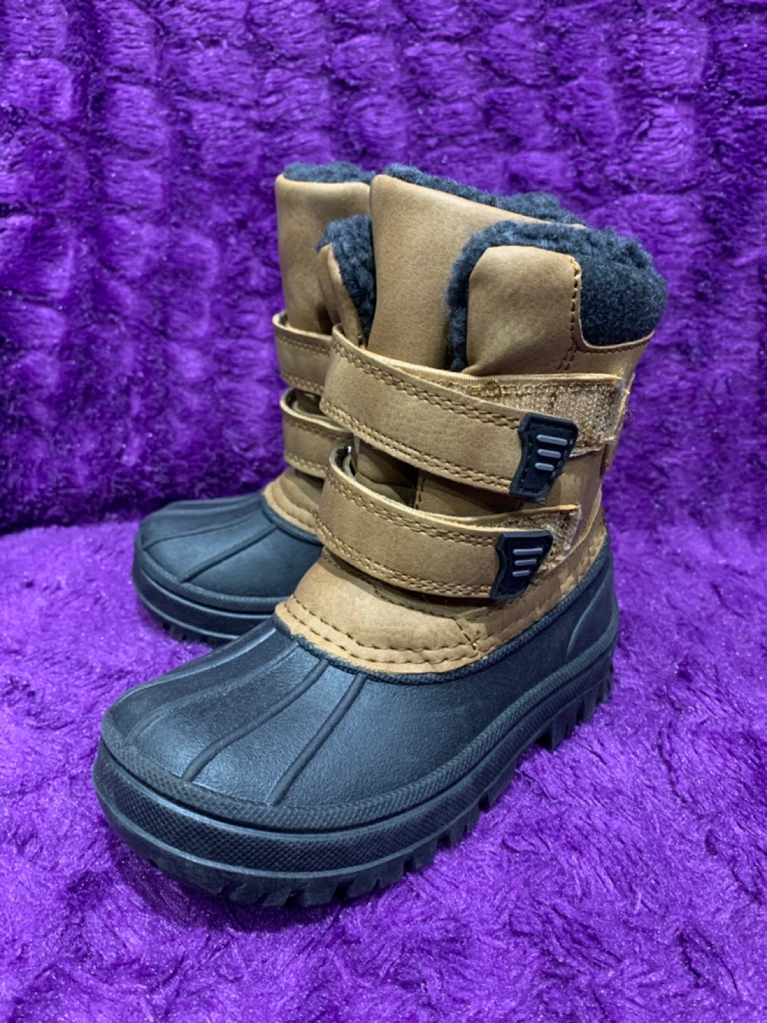 Adorable toddler winter boots. Brown faux leather upper, black rubber sole. Features hook and loop closures. Warm fleece lining. Excellent condition.
