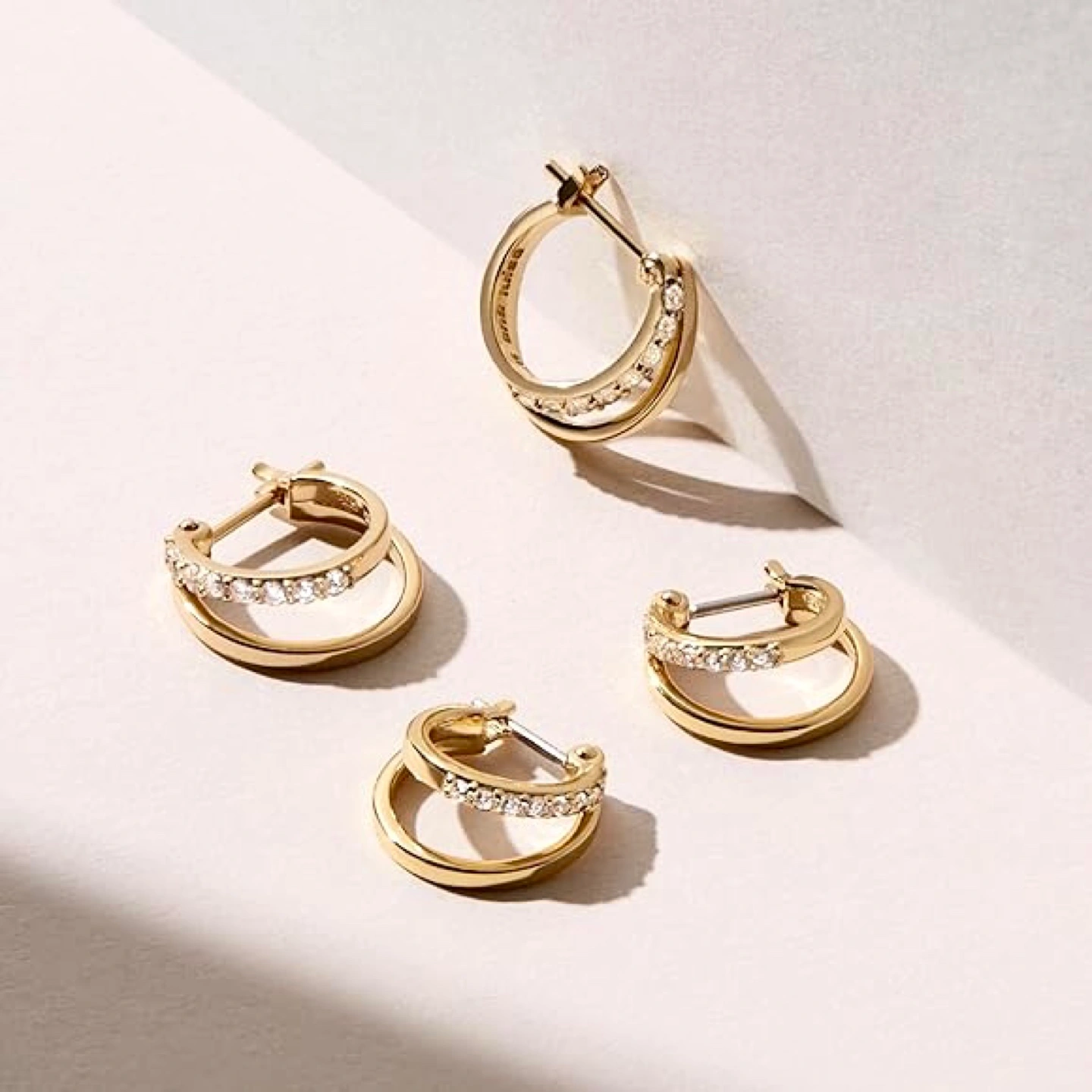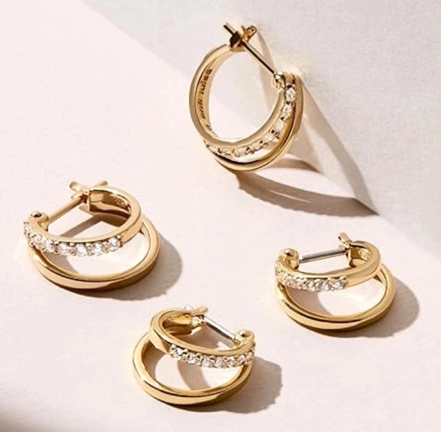BRAND NEW! Designer Ana Luisa Toda Double Hoop Diamond like Earrings in 14K Gold!