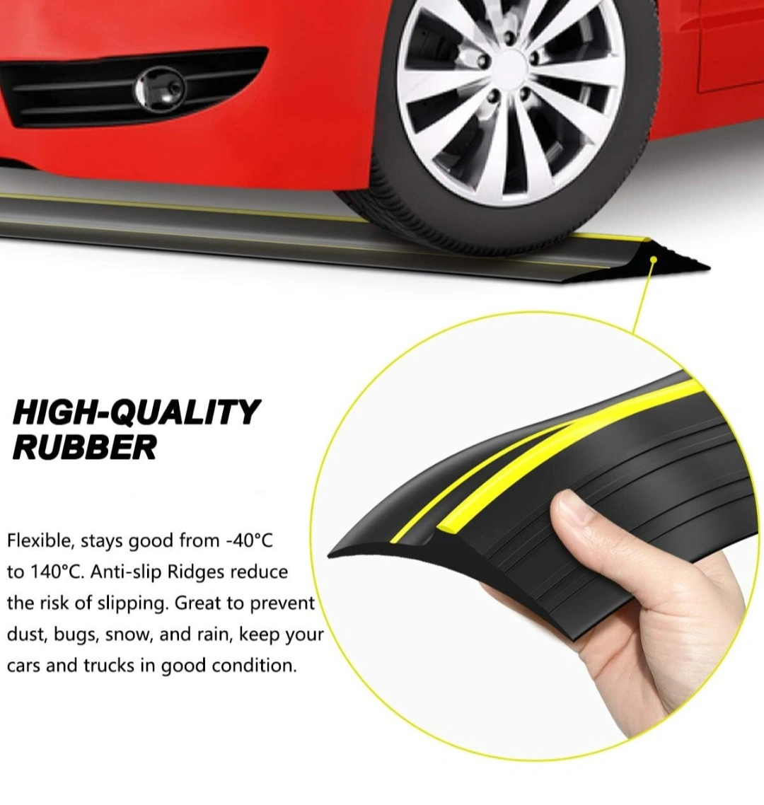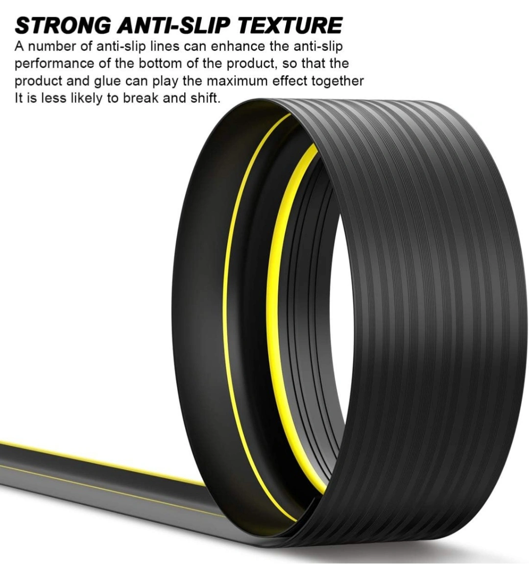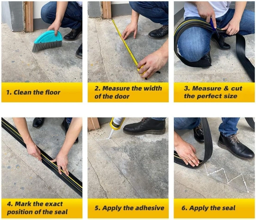 GARAGE DOOR BOTTOM WEATHER STRIPPING. Waterproof and Windproof. Keeps out Dust, Bugs, Snow, and Rain. High-Quality, Durable Rubber, Flexible, and anti-slip. Visable Yellow Stripes prevents Tripping. 12 ft ($20) & Easy installation.