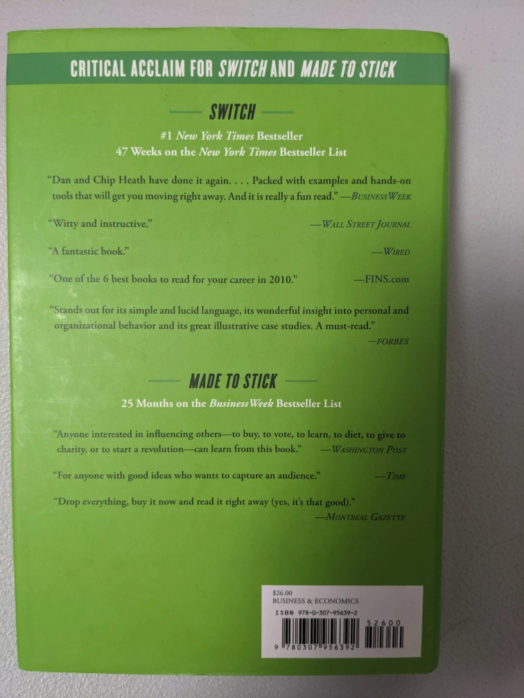 Hardcover book. Excellent condition. Bestselling authors of Switch and Made to Stick. Includes critical acclaim for previous works.