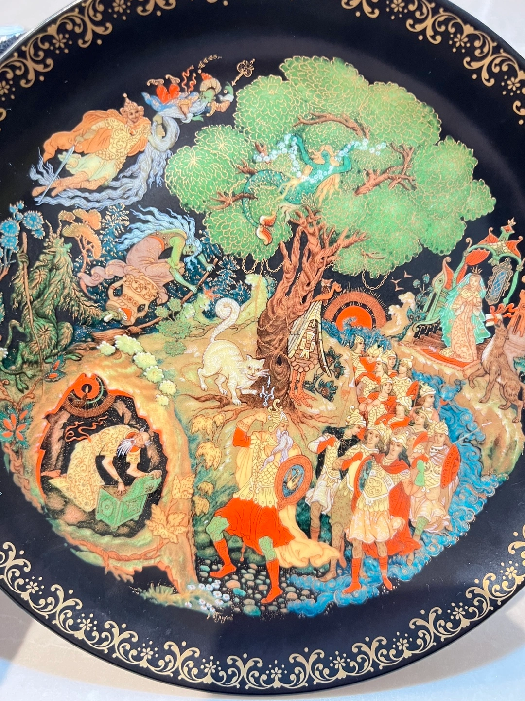 a collector's plate titled "Lukomorya" from the "Russian Legends" series, produced by the Bradford Exchange in 1989. It depicts scenes from Russian folklore, specifically from Alexander Pushkin's poem "Ruslan and Lyudmila":