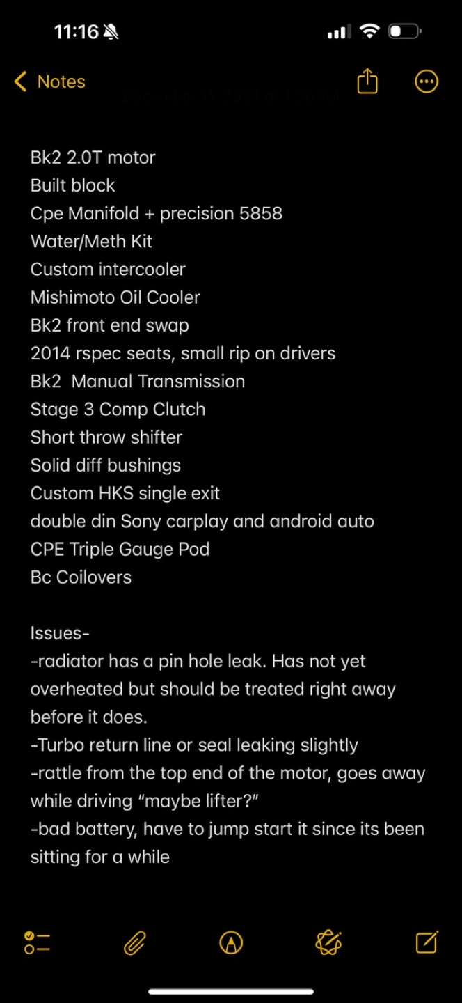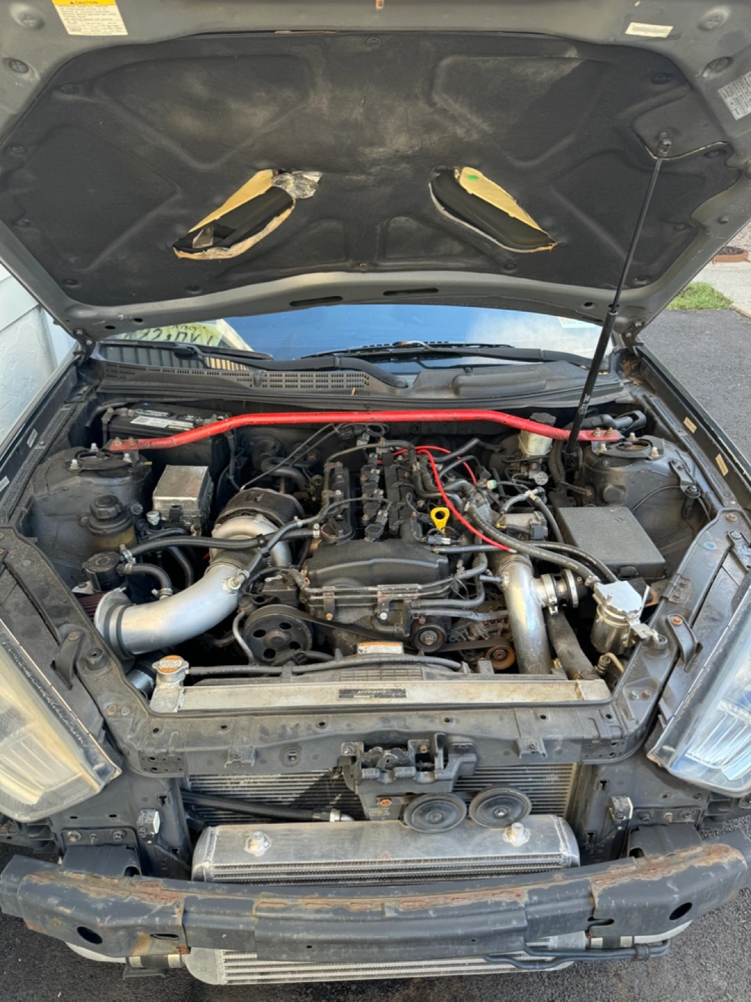 Big turbo+ Built block on Meth. Still runs and drives but would recommend towing since there is a pinhole leak in the radiator. slight noise from top end, goes away with RPMs. was there before the big turbo never gave a issue, maybe noisy lifters? Read Last Picture for Pros And Cons made 450whp on a mustang dyno, 6Speed Stage 3 comp Clutch