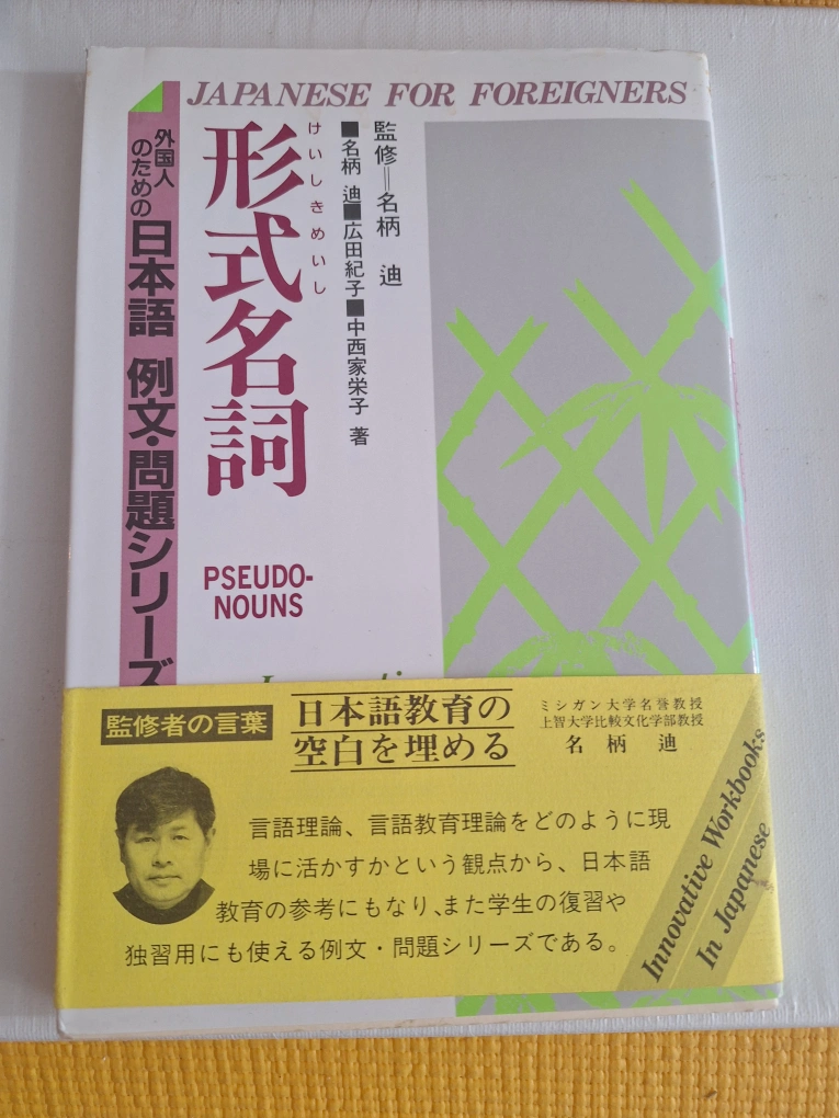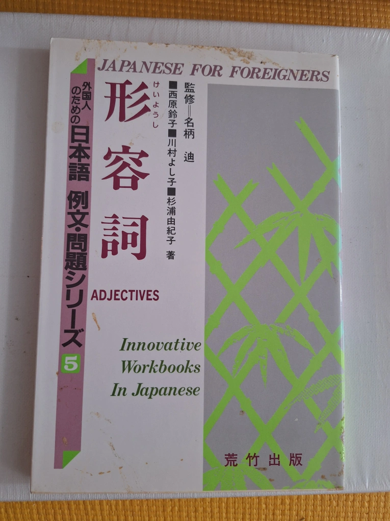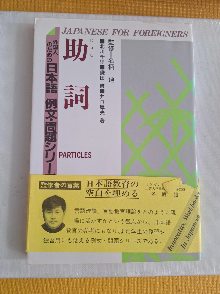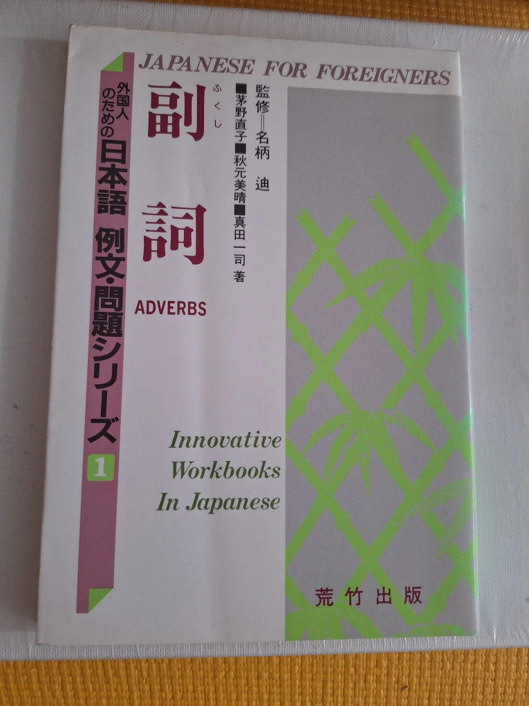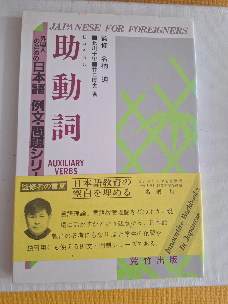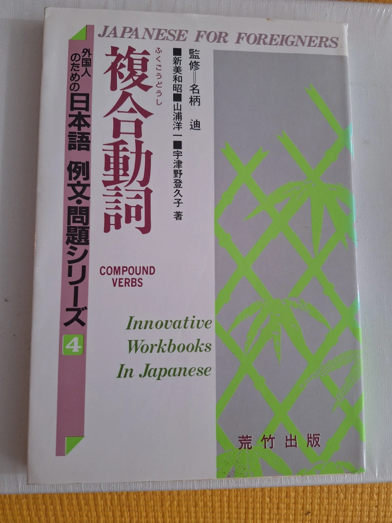 Set of eight Japanese language workbooks. Part of a larger series. Covers compound verbs, orthographic systems, adjectives, particles, and connectives. Excellent for language learners. Used condition.