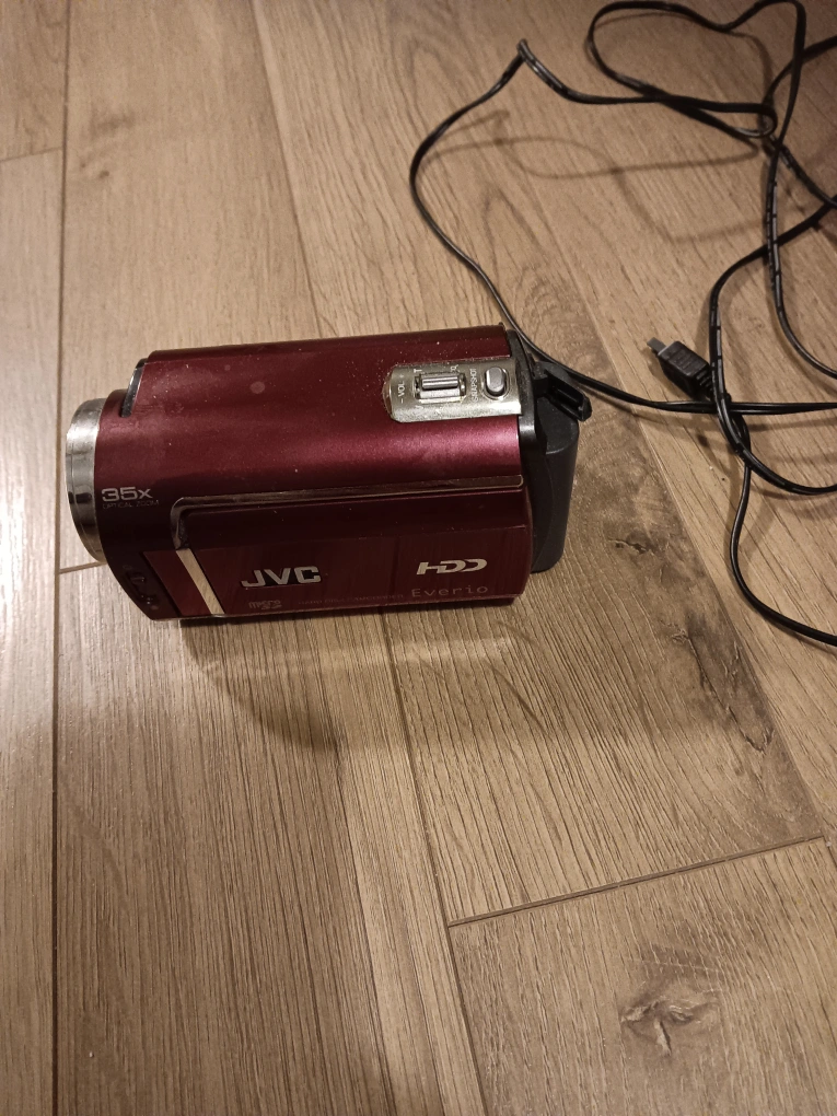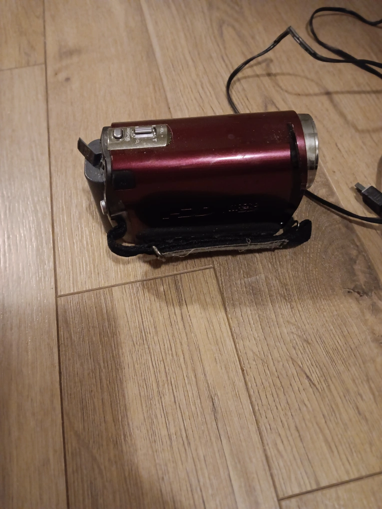 Portable HD camcorder. 36x optical zoom. Includes charger and cable. Red colour.