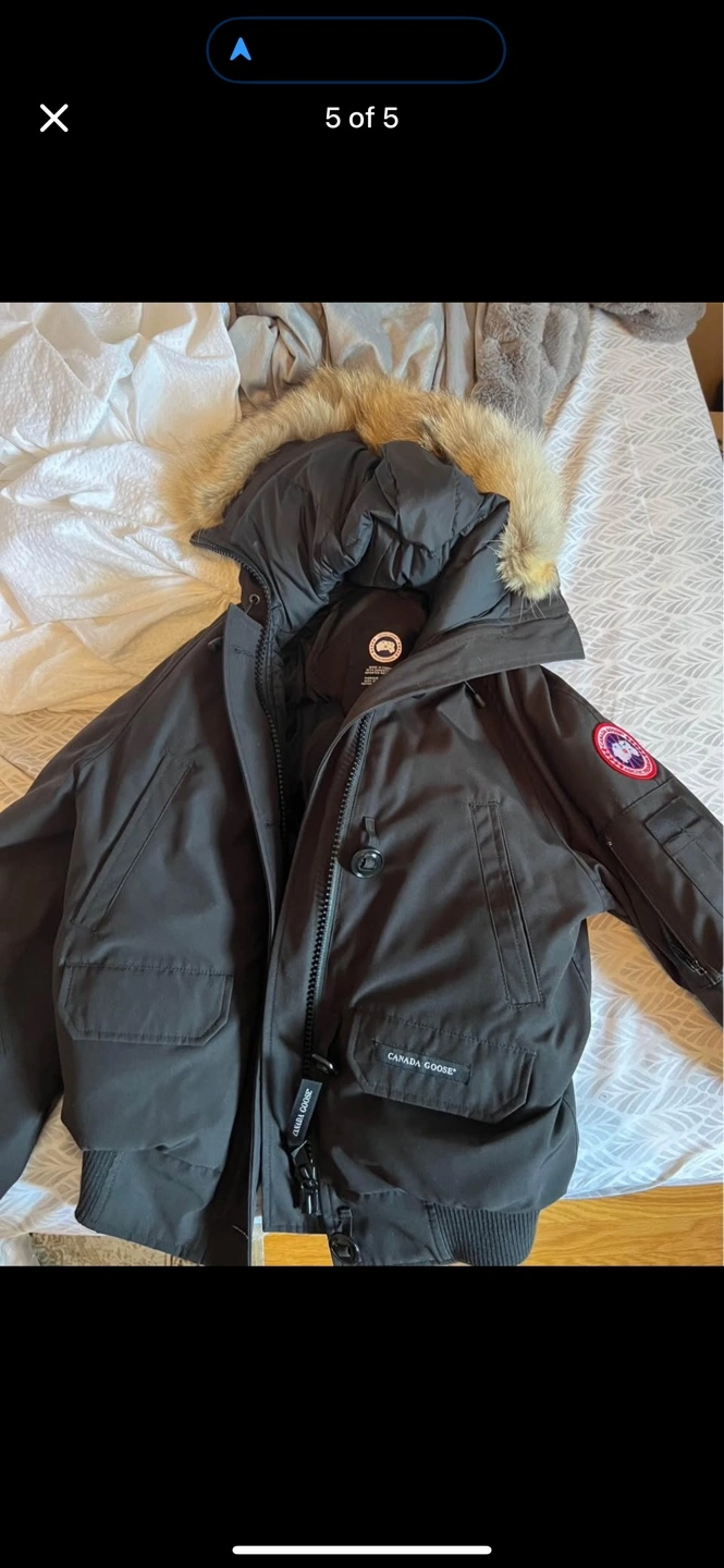 Women's Canada Goose Chilliwack Bomber Heritage Parka. Size small. Black colour. Features a fur-trimmed hood. Original. Only worn a couple of times. Fur on hood no longer available on new styles. Paid $1500. Asking $1000 obo pick up in Bradford or Vaughan.