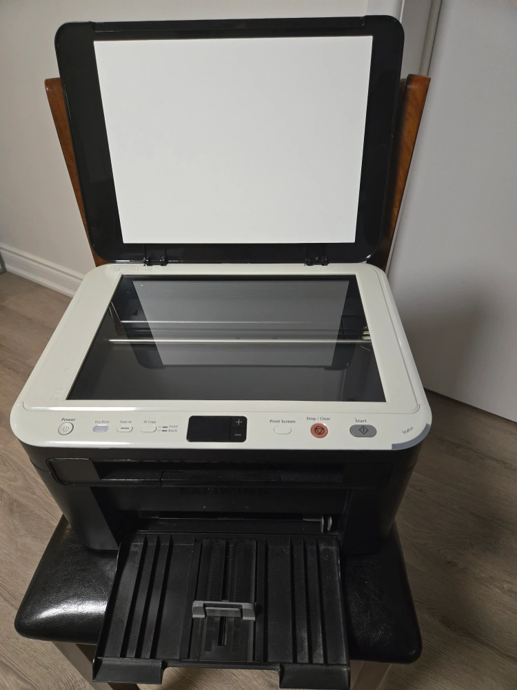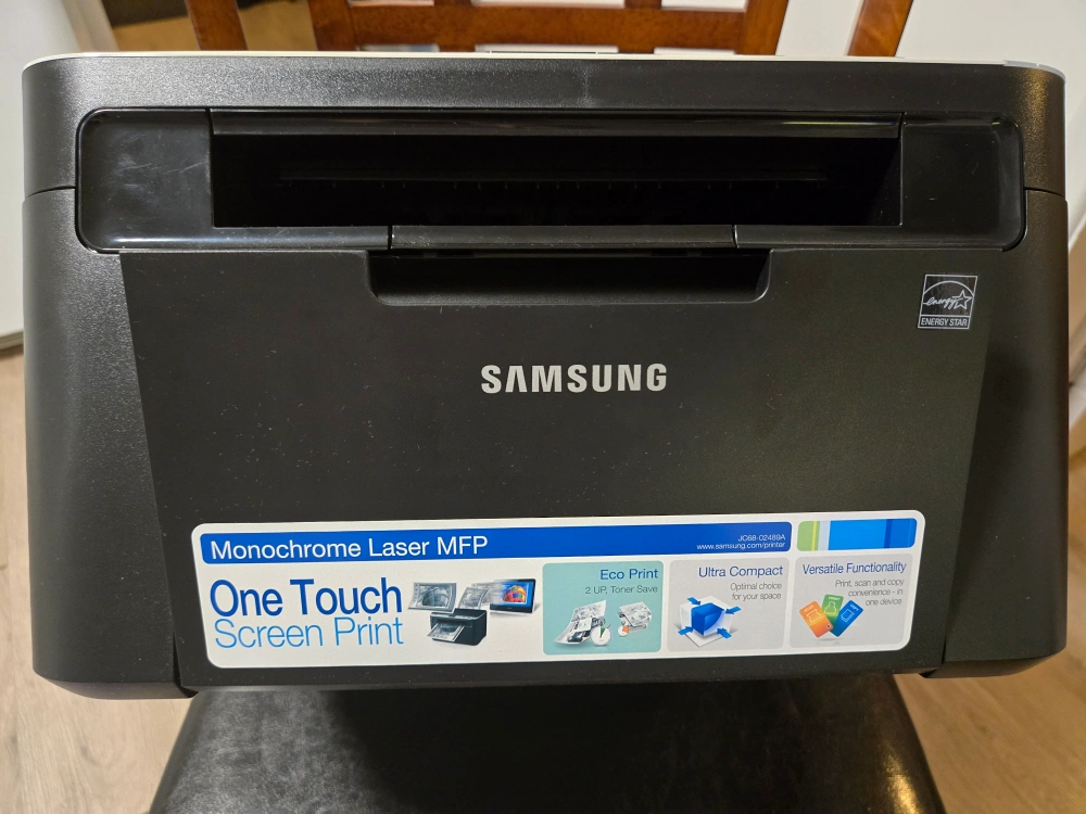Monochrome laser multi-function printer. Features one-touch screen print. Eco print and ultra compact. Versatile functionality. Includes toner cartridge. Cable connections are missing somewhere and you need to purchased them. Come and pick it up for FREE FREE FREE!