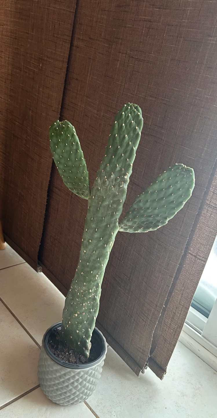 Tall cactus in a grey textured pot. Unique shape, healthy looking plant. Perfect for adding a touch of the desert to your home.