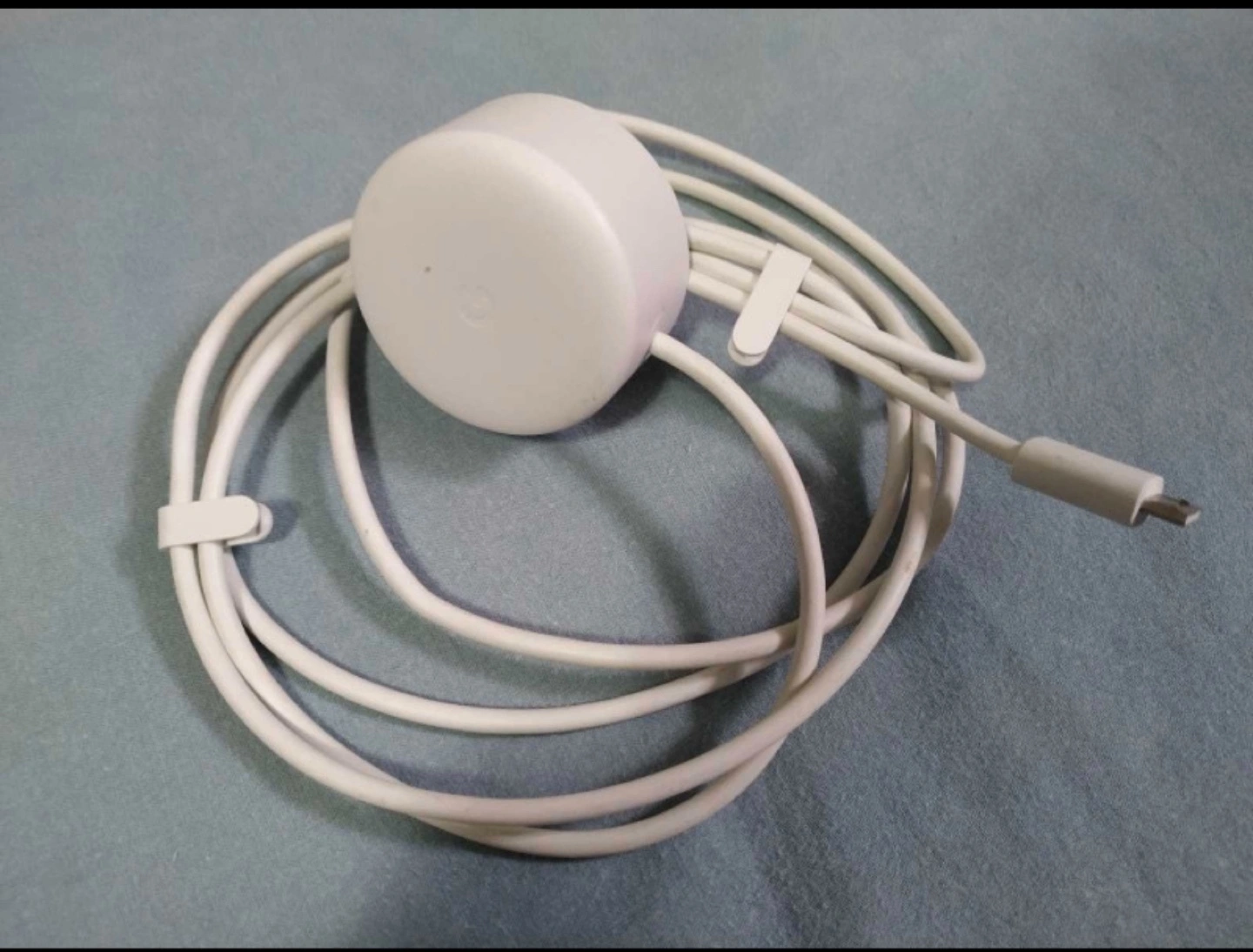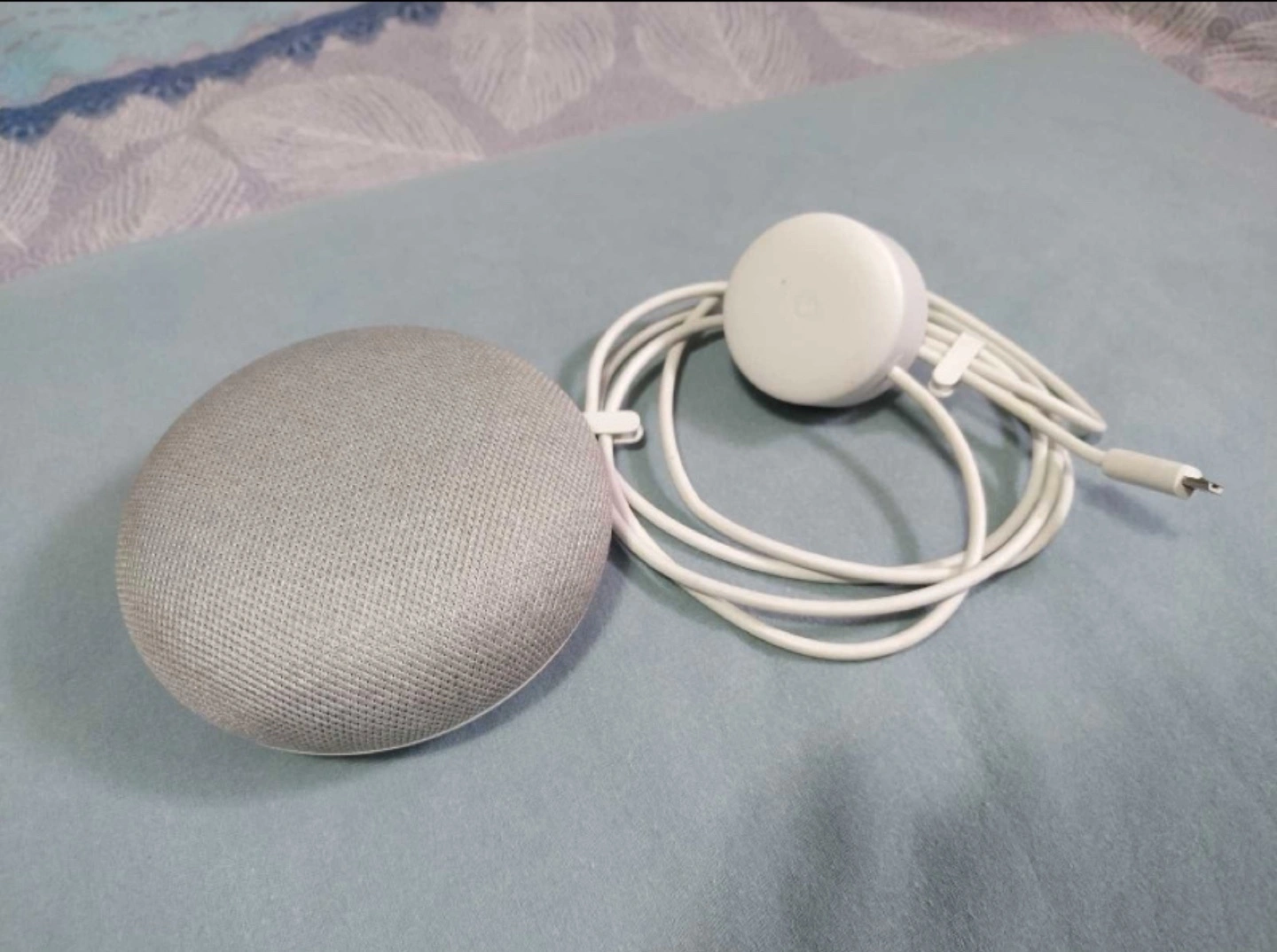 Google Nest Mini smart speaker. Second generation model. Chalk colour. Includes power adapter. Great for music and voice control.