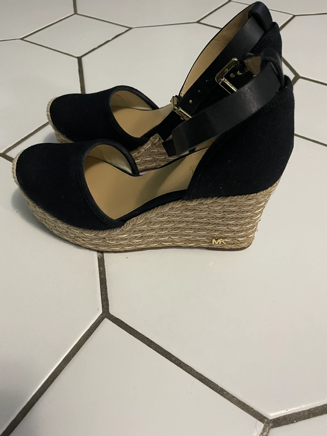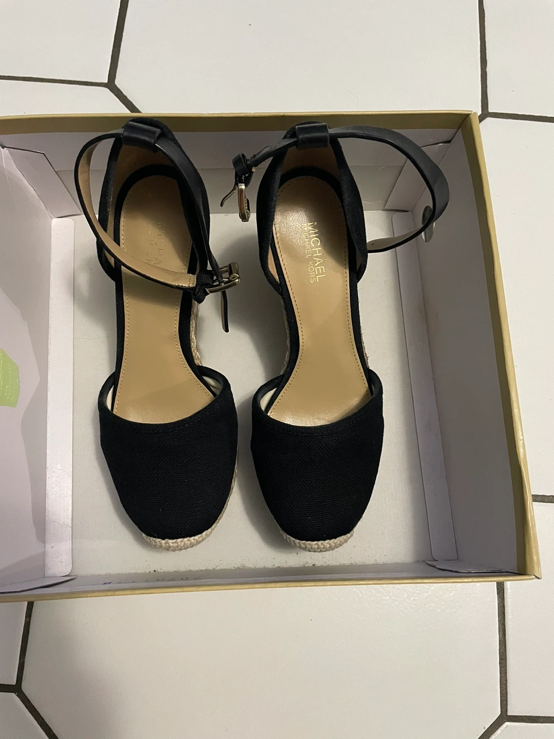 These stylish Michael Kors espadrille wedge sandals are in great condition and ready for a new home! They feature a black canvas upper and a comfortable wedge heel. Comes with the original box!