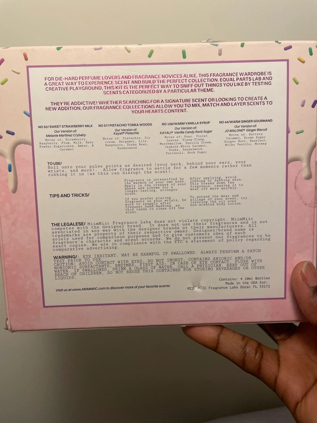 Four gourmand-based roll-on perfumes. Sweet Strawberry Milk, Pistachio Tonka Woods, Hawaiian Vanilla Syrup, and Warm Ginger Gourmand scents. Great for perfume lovers and novices.