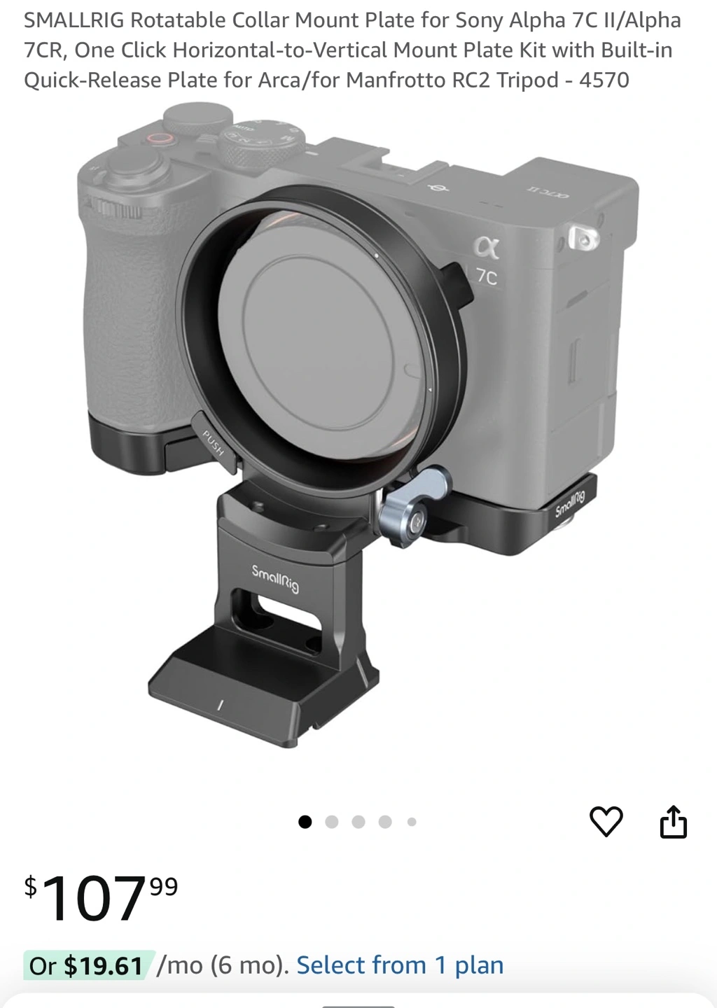 SmallRig camera mount plate kit. Includes rotatable collar, horizontal-to-vertical mount plate, and Arca/Manfrotto compatible quick-release plate. For Sony Alpha 7C & Alpha 7R etc.