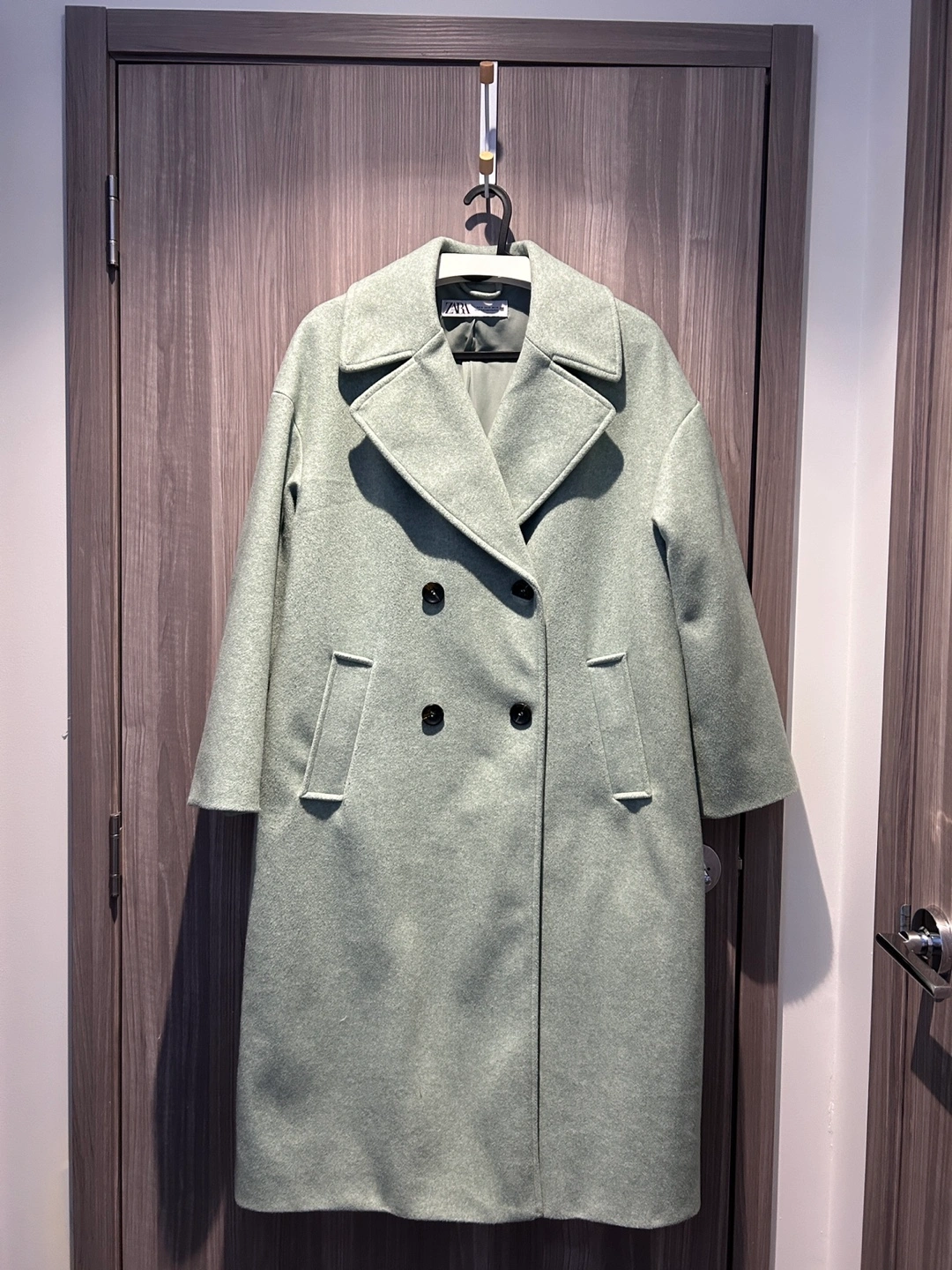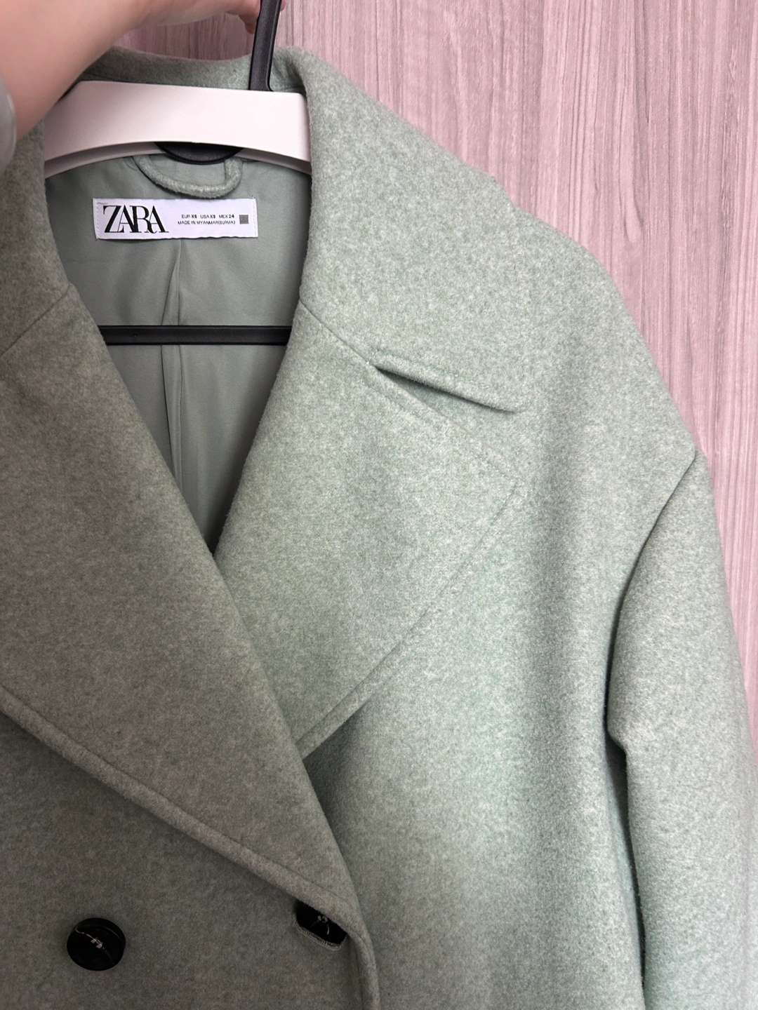 Oversized Zara Women's Sage Green Double-Breasted Overcoat