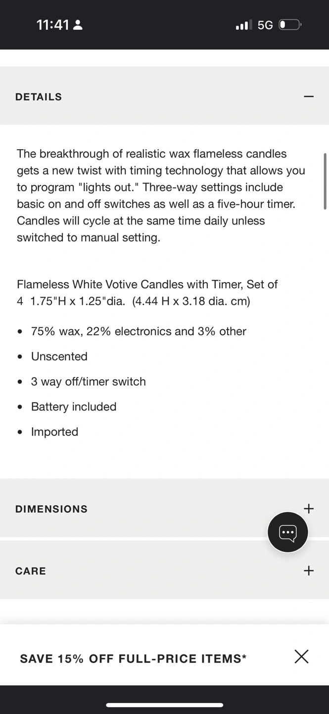 Regularly $29.95 per package: https://www.crateandbarrel.ca/set-of-4-flameless-white-votive-candles-with-timer/s122586