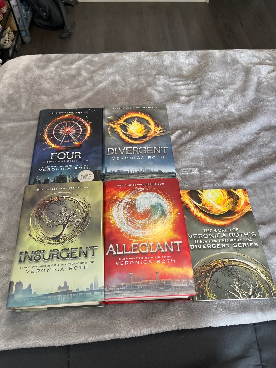Complete Divergent series including Divergent, Insurgent, Allegiant, and Four. All books are in good condition. Bonus booklet included.