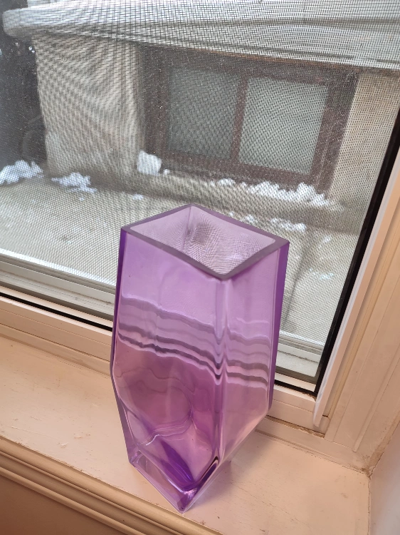Purple glass vase. Modern geometric shape, no longer fits my decor style. Pickup only near Dupont and Lansdowne intersection, cash or etransfer is ok.