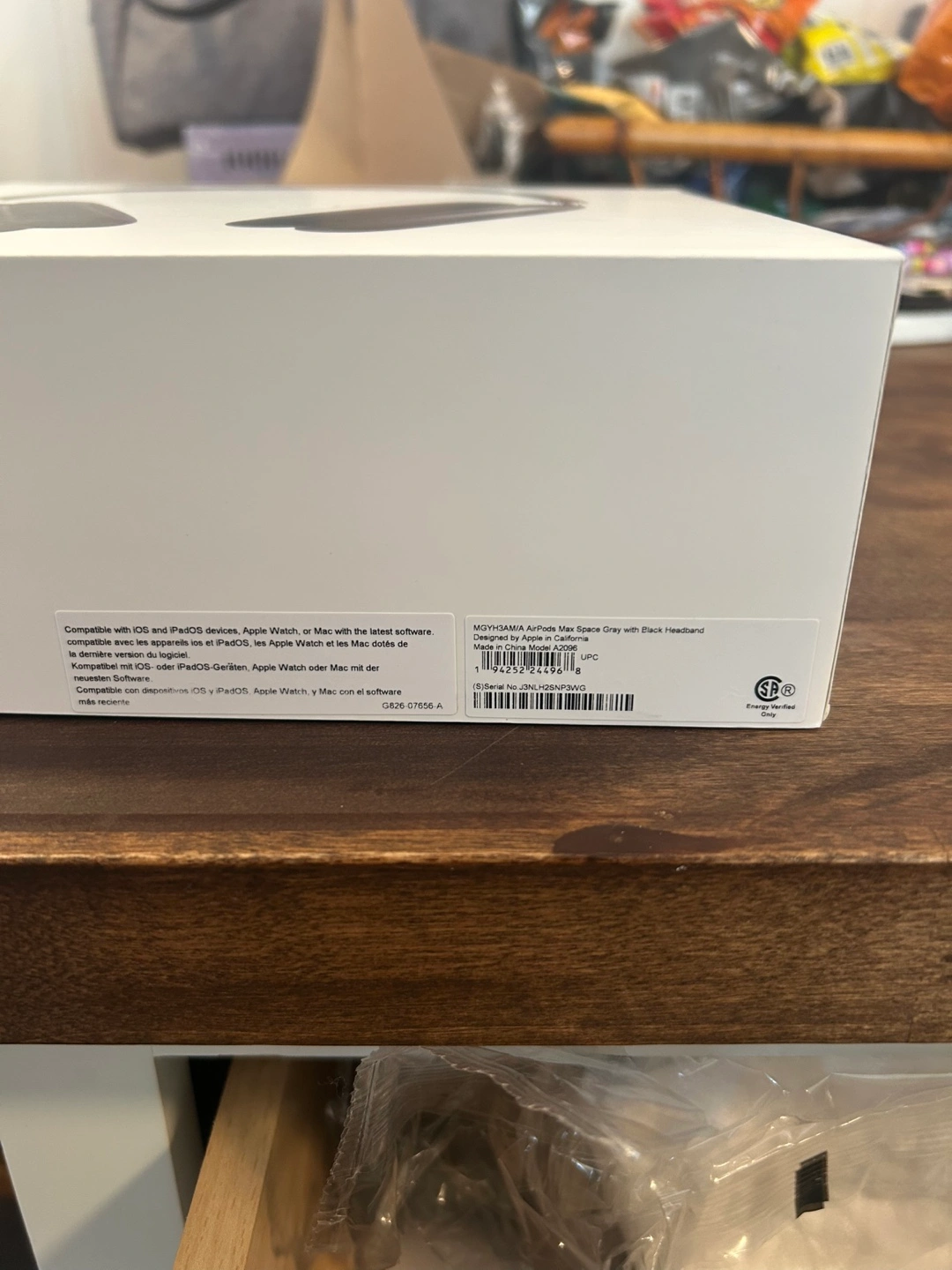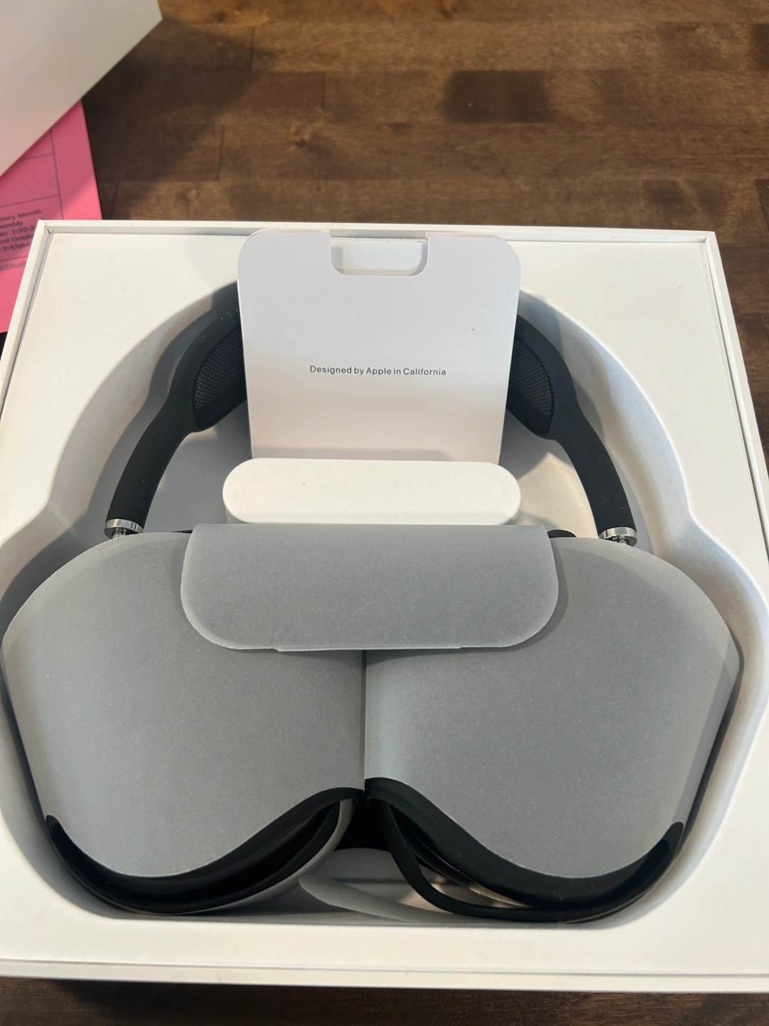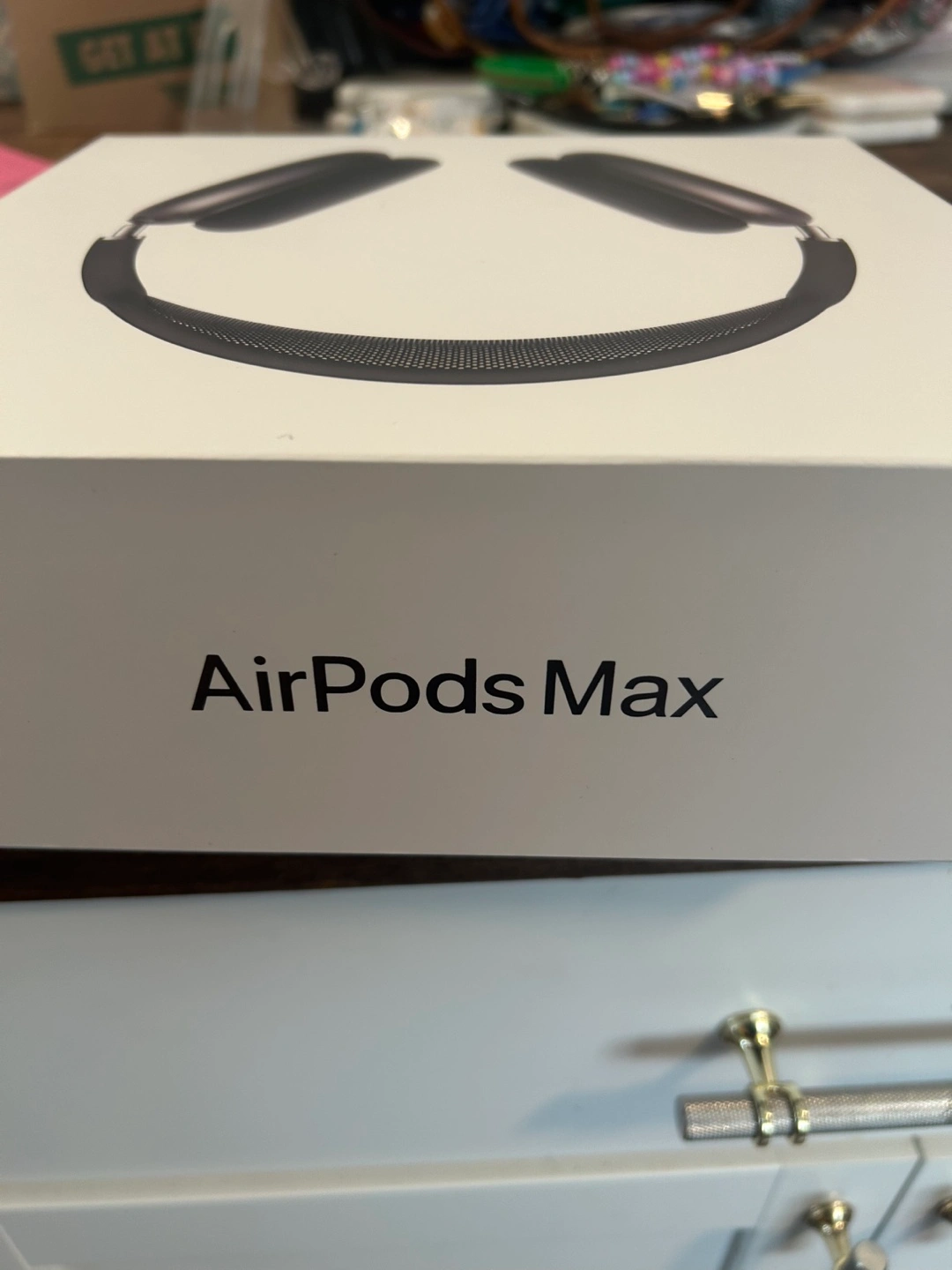 New AirPods Max headphones. Space Gray color. Includes original box and packaging. Compatible with iOS and iPadOS devices, Apple Watch, and Mac.