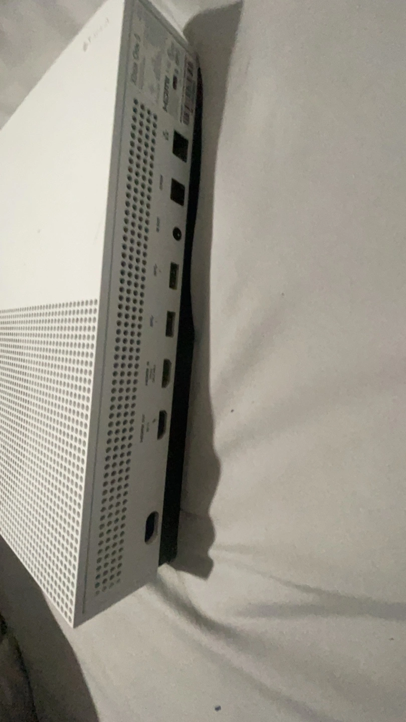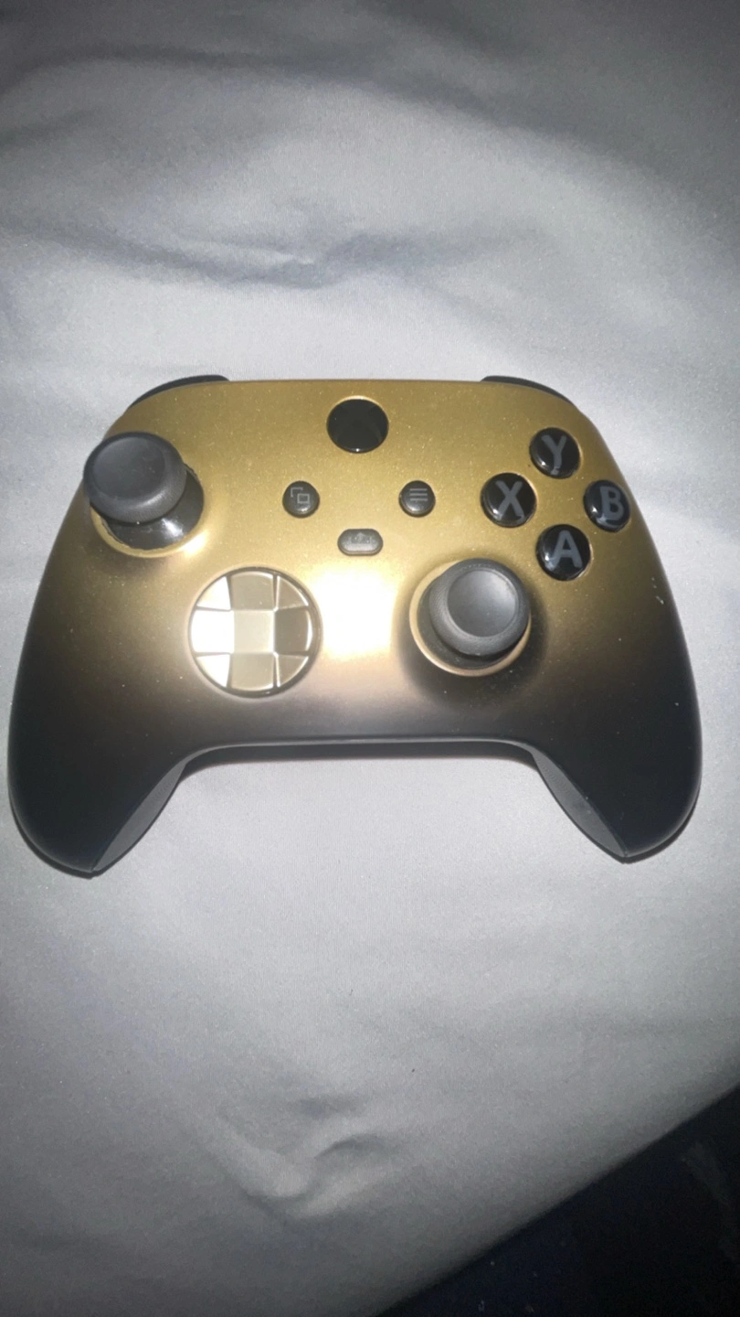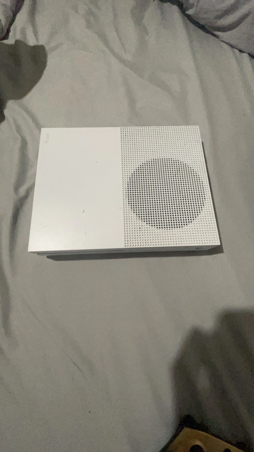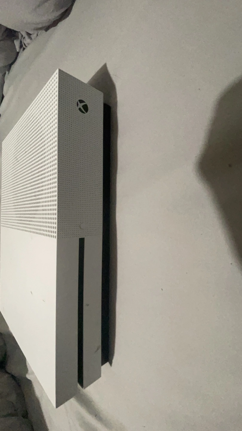 White Xbox One console. Includes a gold custom controller. Good condition. Comes with cords. About 800 G of storage. Selling because i got Series S and dont need two. Pick up. Delivery Fee 20$