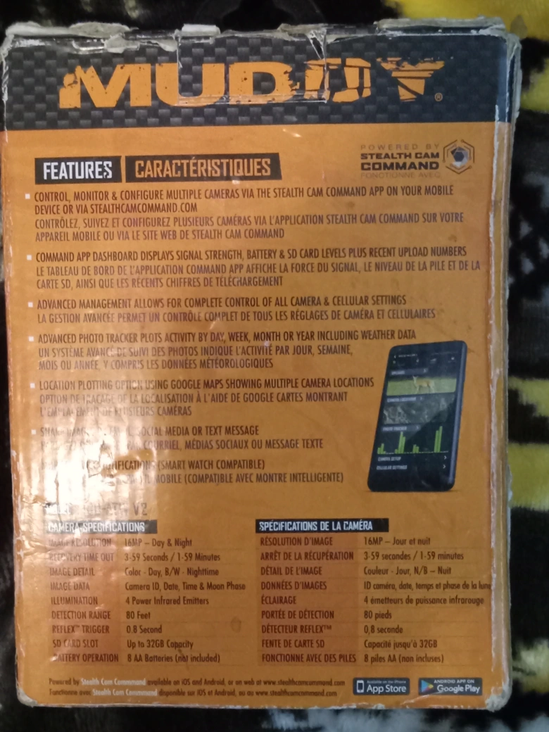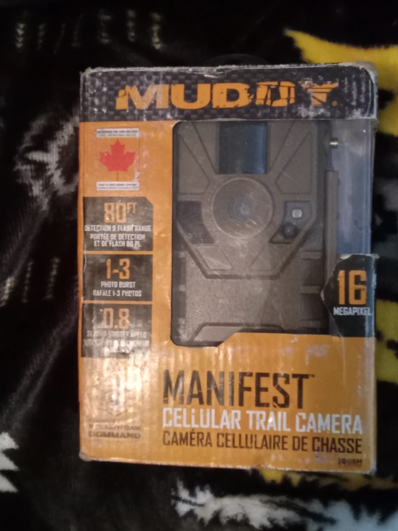 New in box. 16 Megapixel camera. 80ft detection range. Cellular connectivity. Photo burst. Includes SD card.