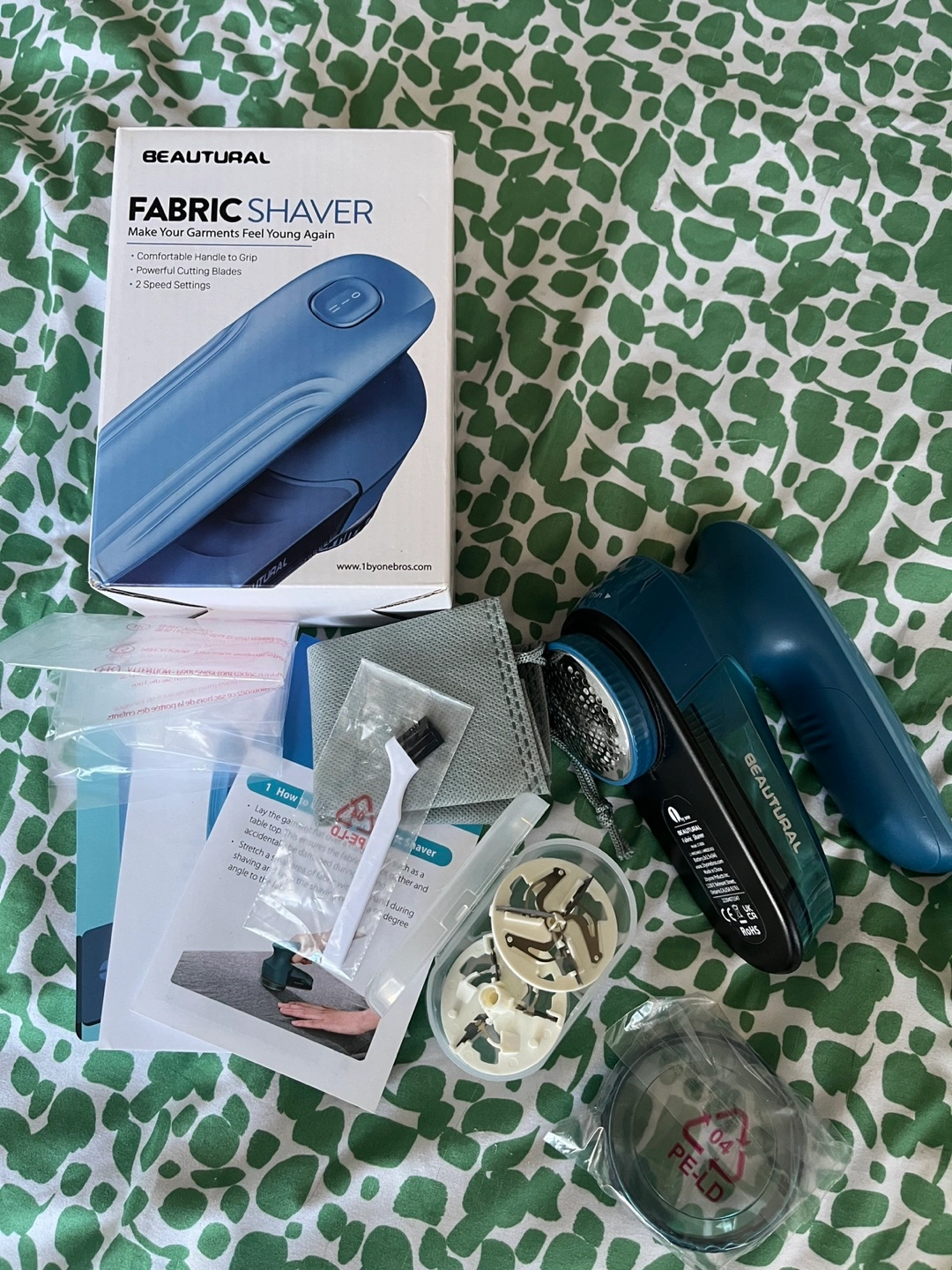 BEAUTURAL Fabric Shaver. Includes extra blades and cleaning brush. Two speed settings. Comfortable grip.