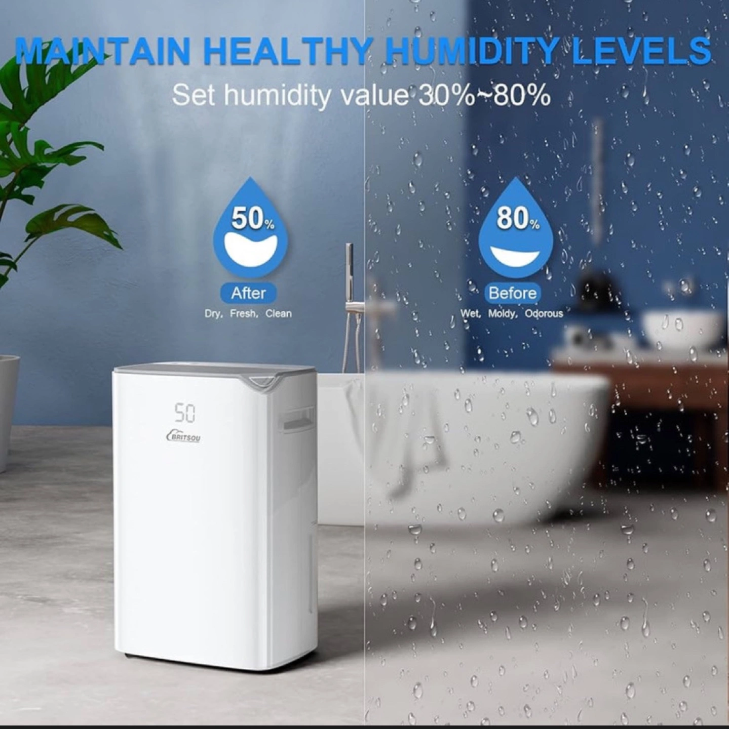 BRITSOU 80 Pint Dehumidifier w/ Drain Hose