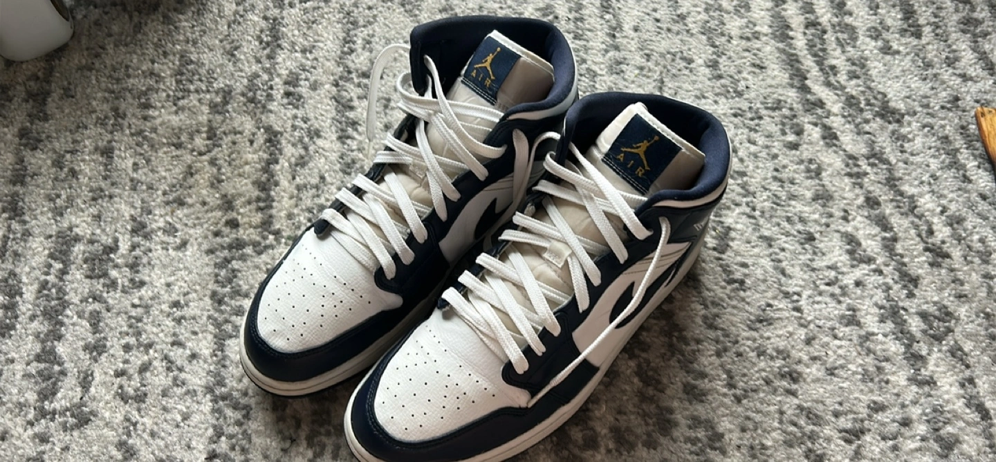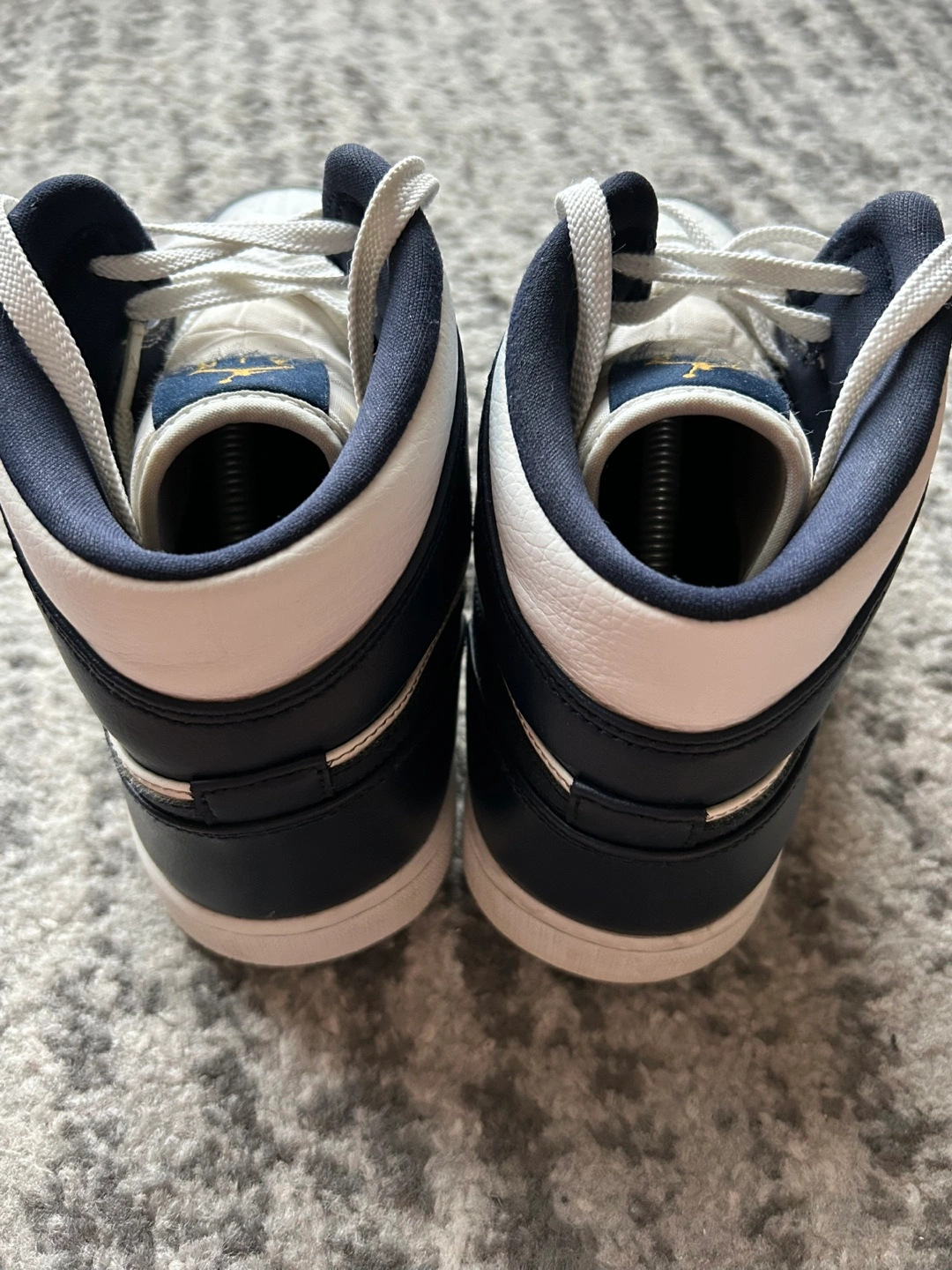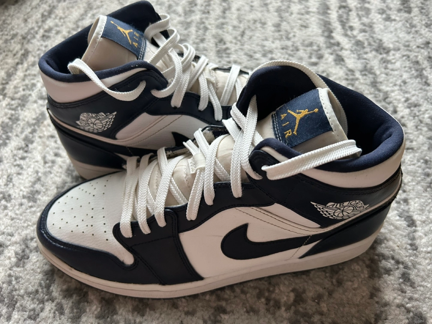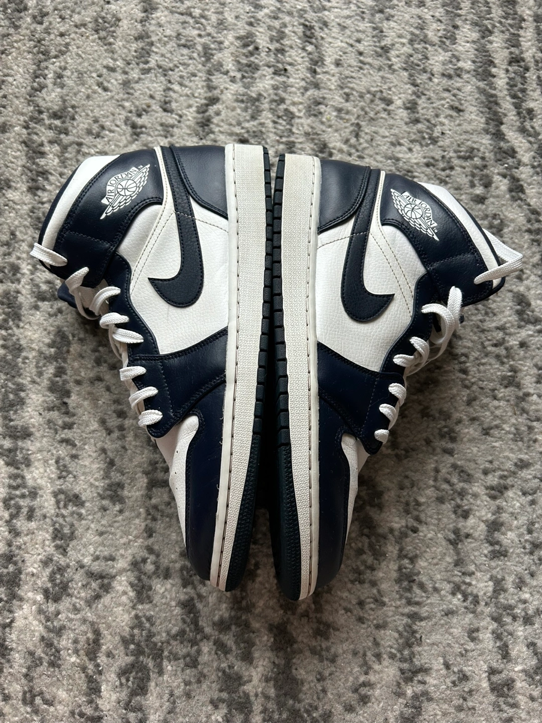 Nike Jordan 1 mid obsidian blue, white.