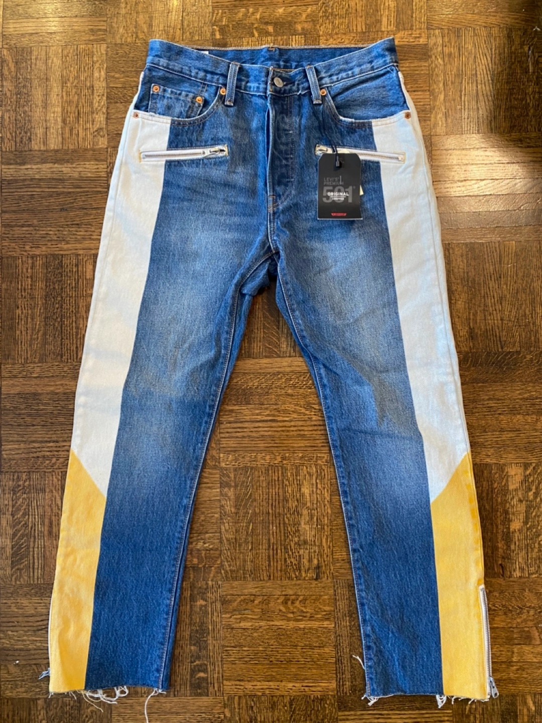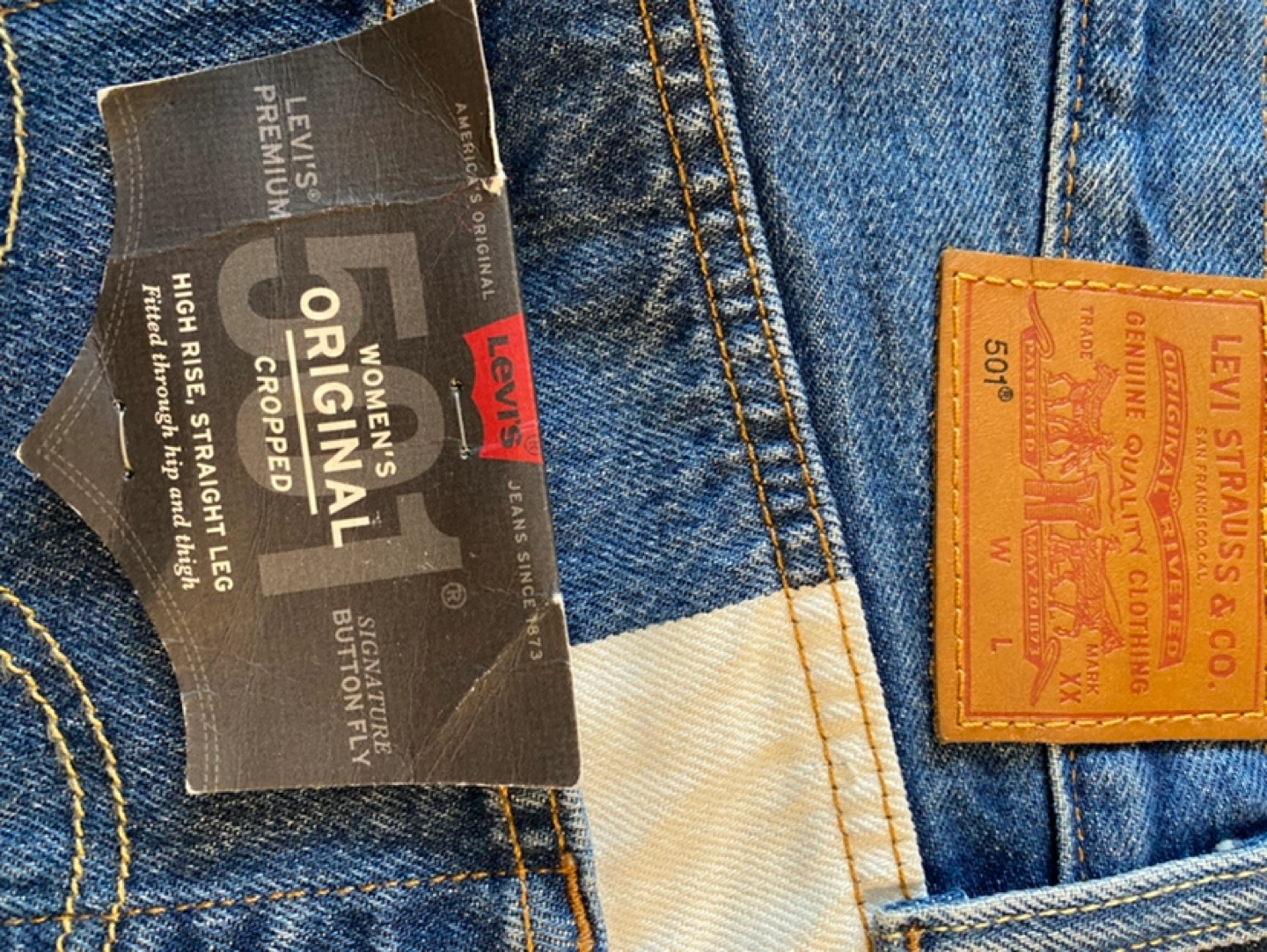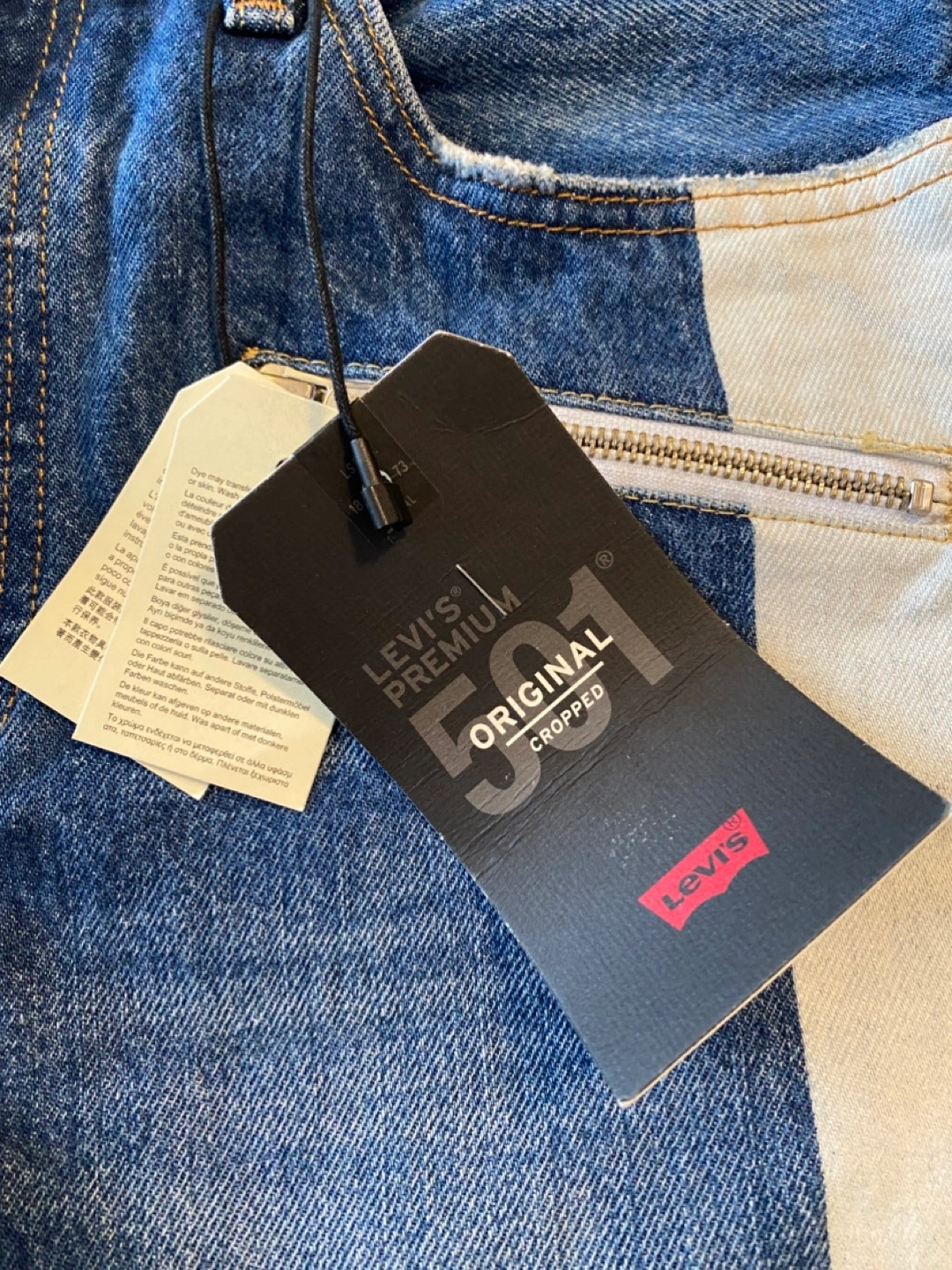 Women's Levi's 501 Original cropped jeans. High rise, straight leg. Fitted through hip and thigh. Unique colour block design. Signature button fly.