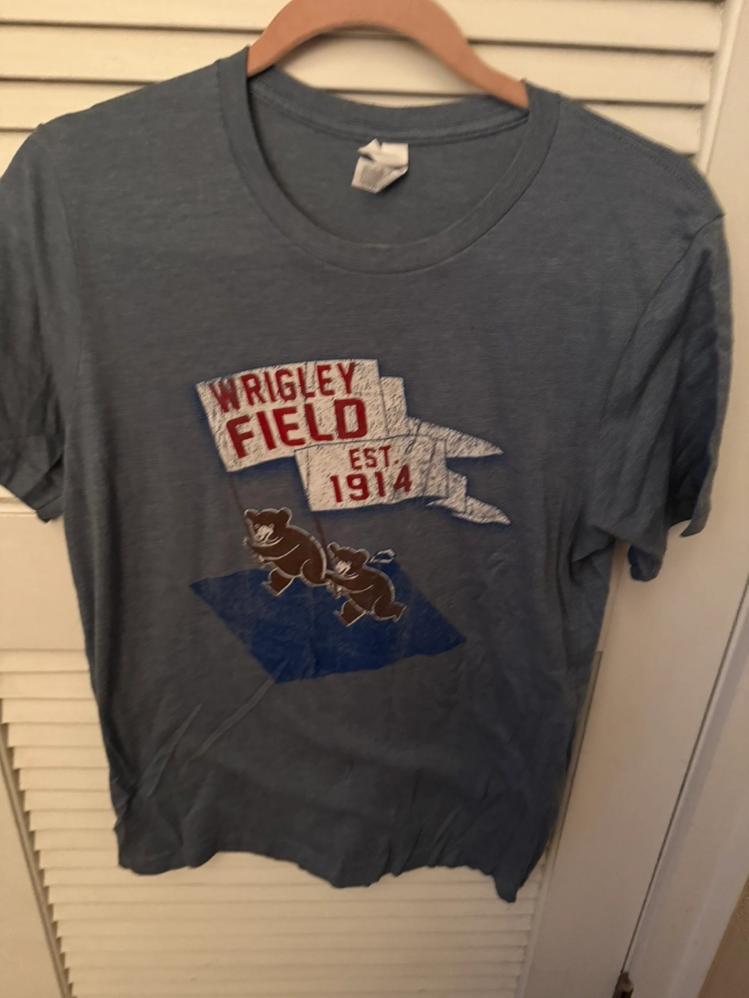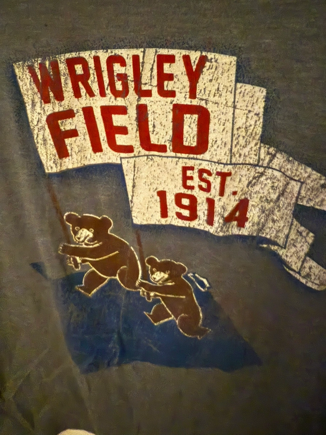 Distressed Wrigley Field graphic tee. Classic cub design by Bella+Canvas brand. Soft material.