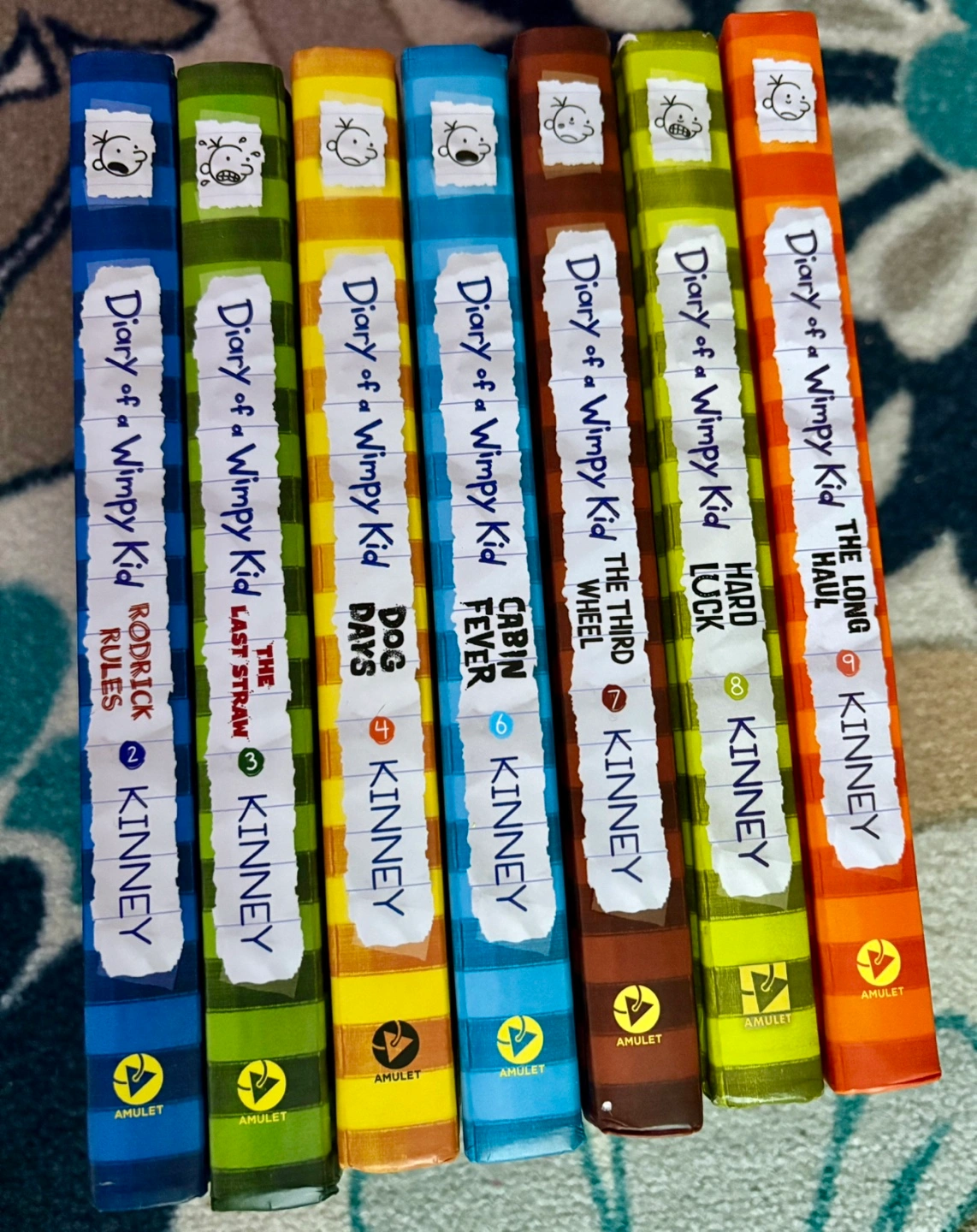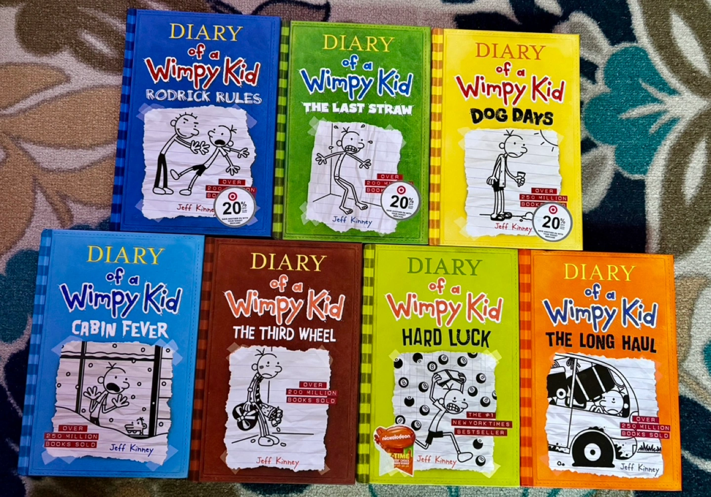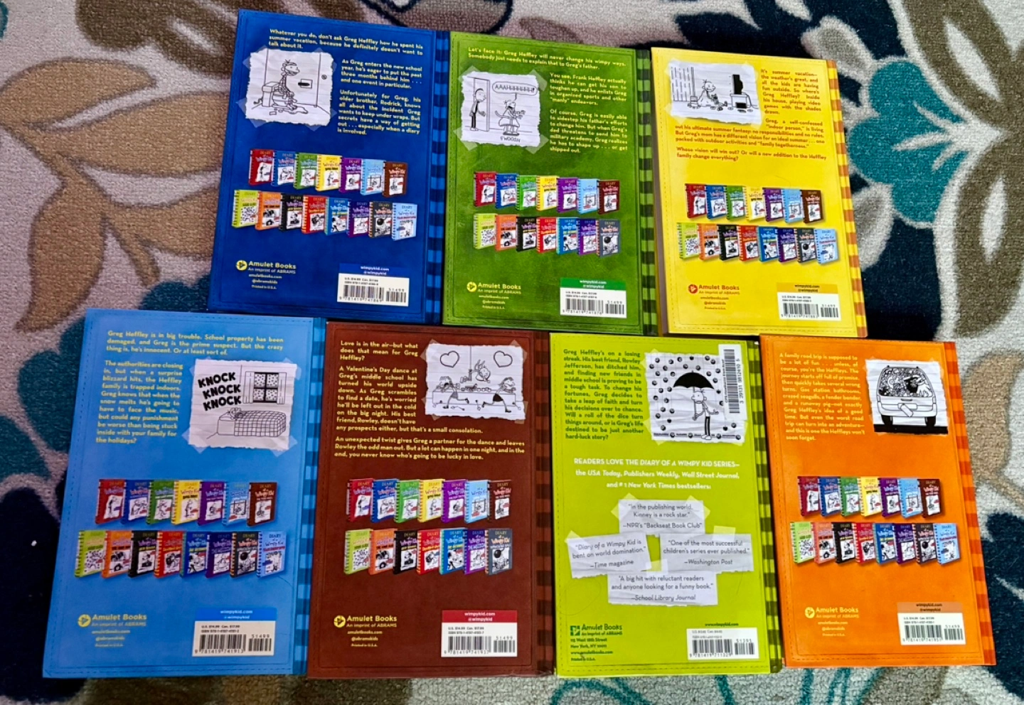 7 hardcover Diary of a Wimpy Kid books. Includes Rodrick Rules, The Last Straw, Dog Days, Cabin Fever, The Third Wheel, Hard Luck, The Long Haul. Great condition!!!!!