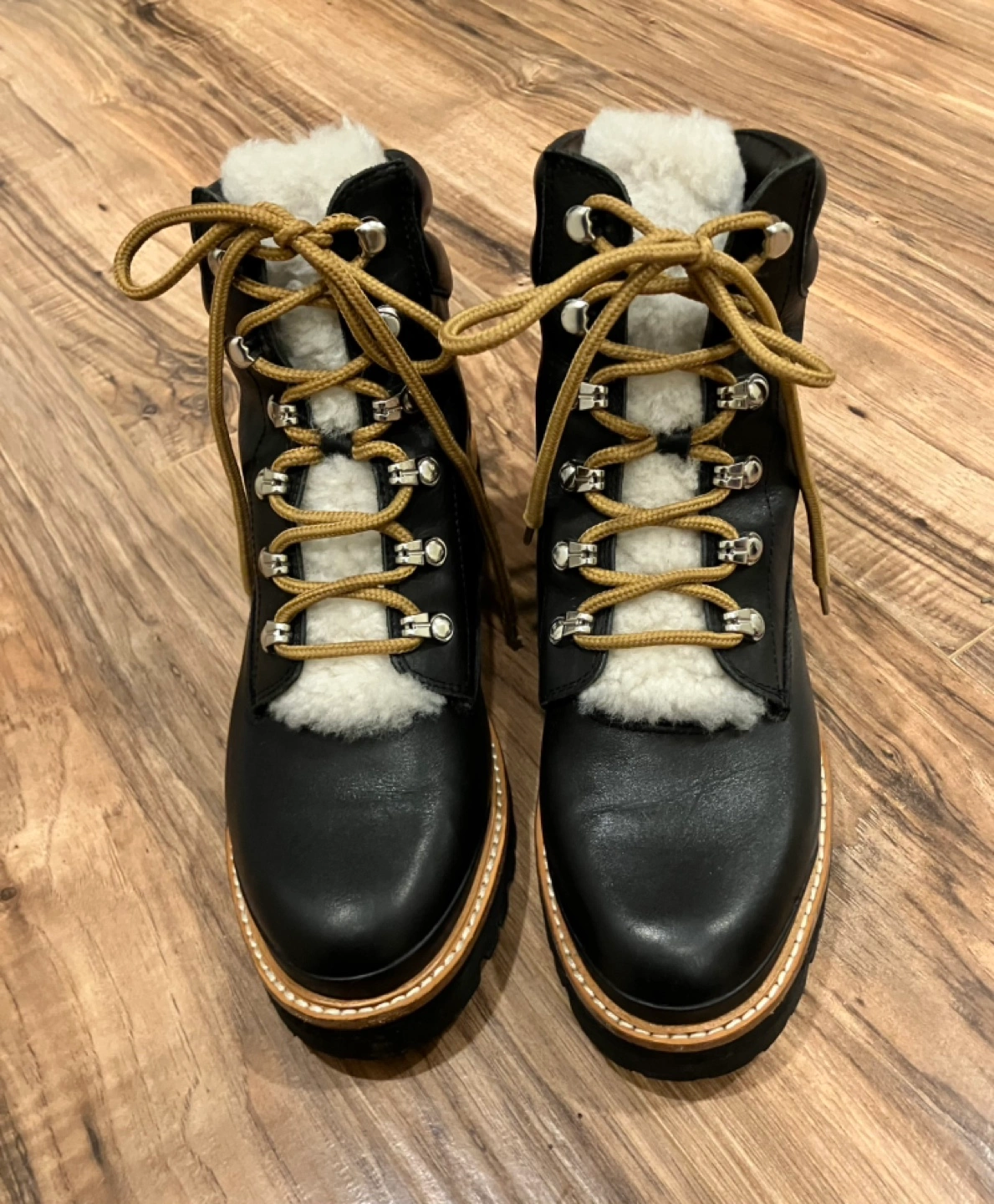 Marc Fisher Idella Black Leather Shearling Hiking Boots.