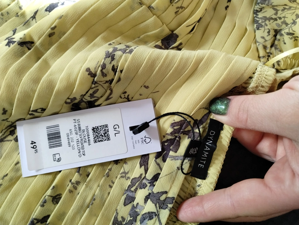 Cute yellow crop top. Floral print. Puff sleeves. Pleated detail. Size L