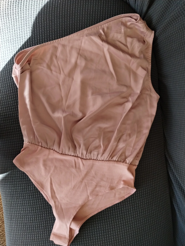 Dusty rose one-shoulder bodysuit. Size large. Lightweight material. Snappy closure at bottom.