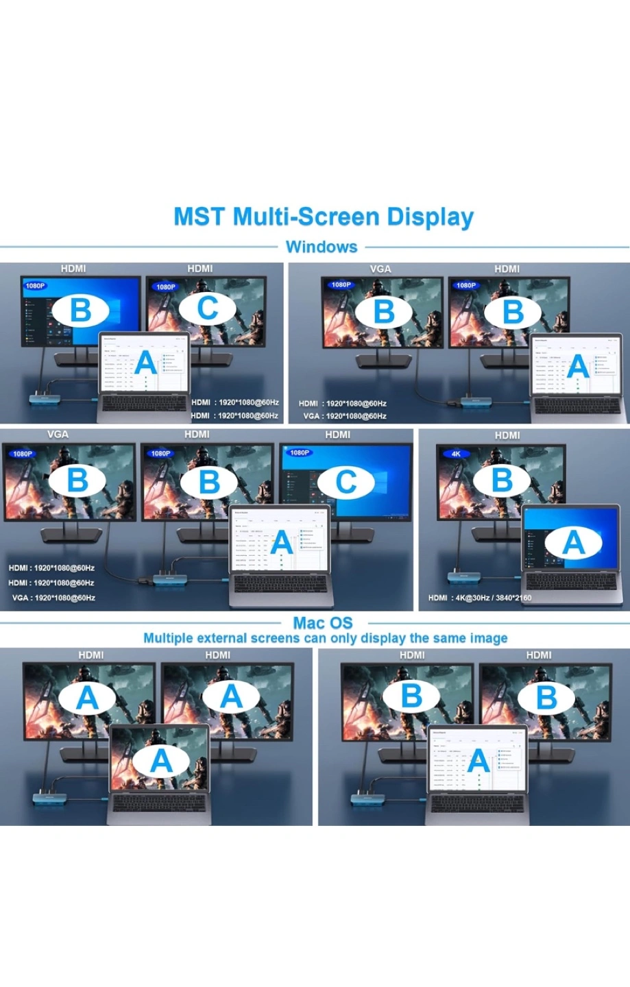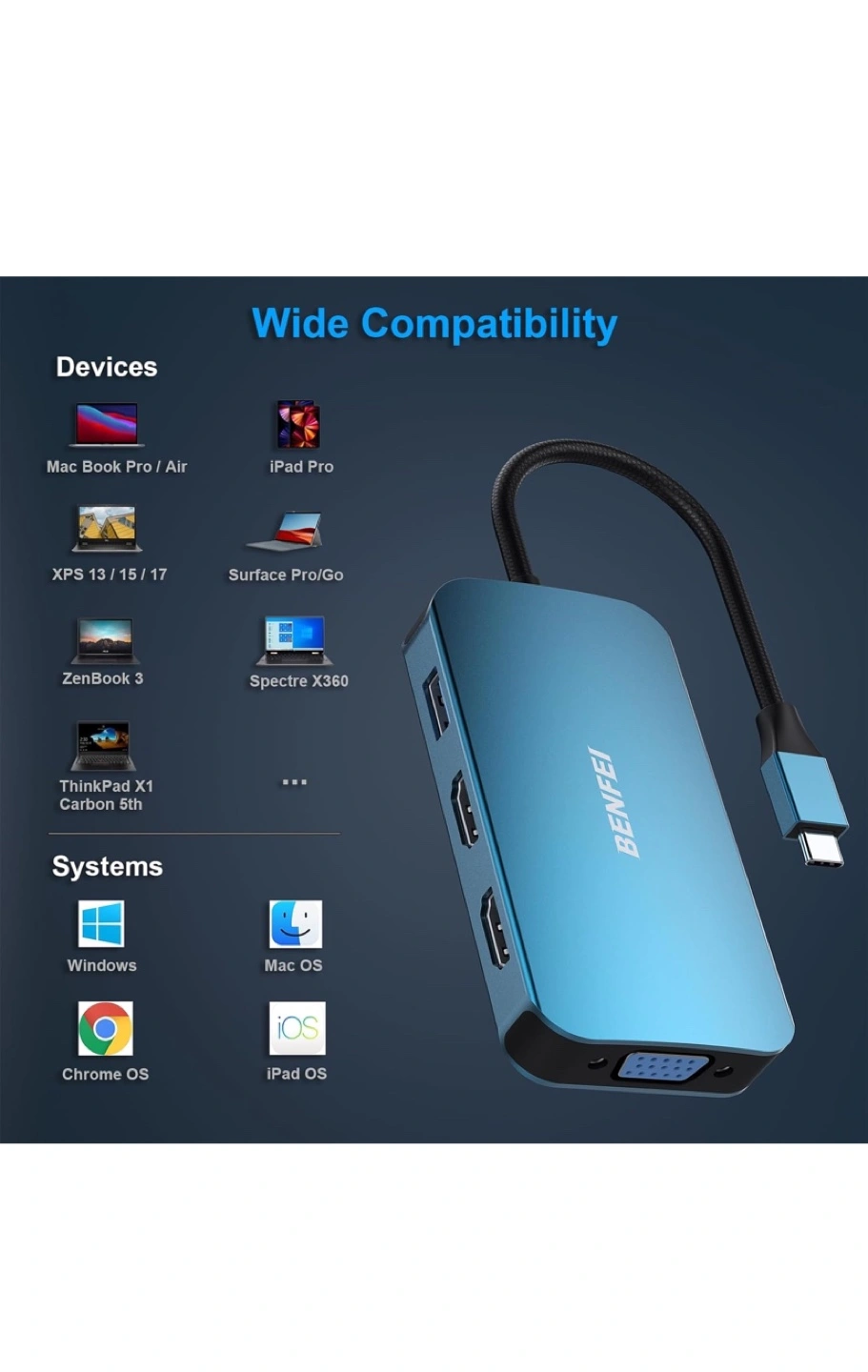 Benfei 8-in-1 USB-C Hub - Multi-Screen Display