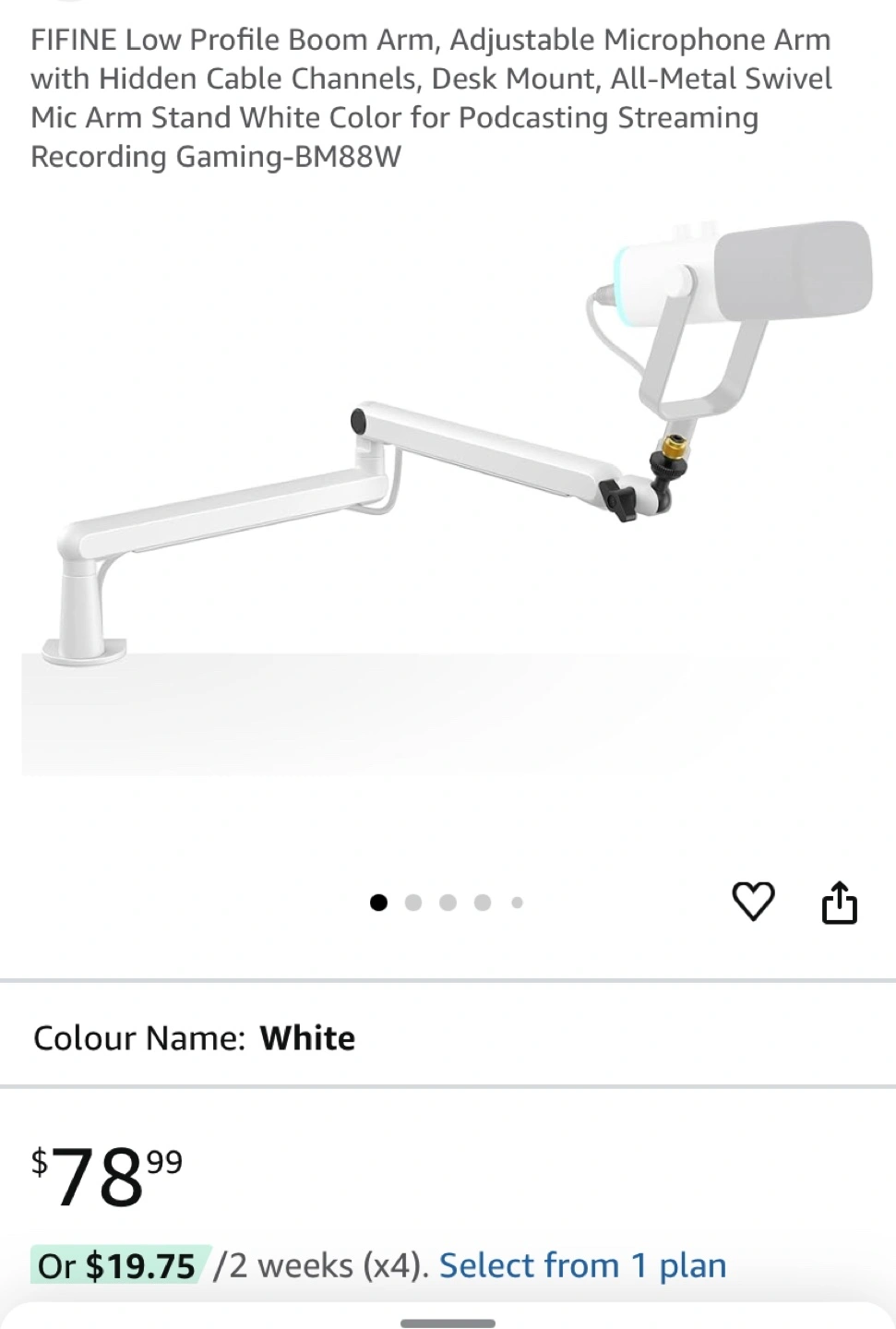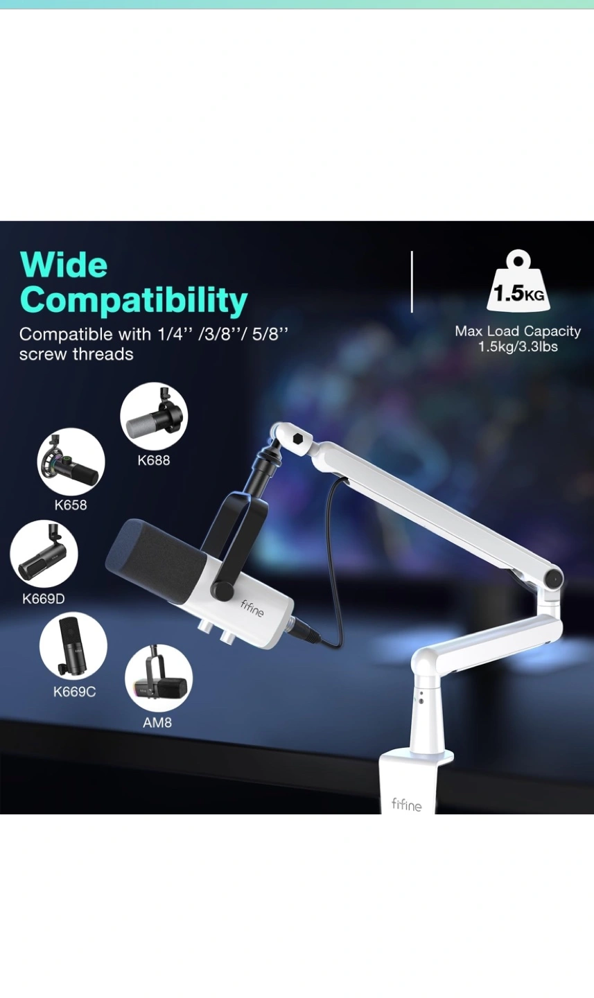 FIFINE BM88 Low Profile Microphone Boom Arm - White