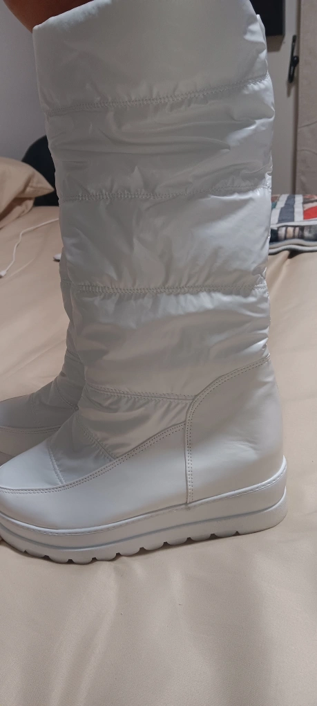 Women's Brown Fur Trim Wedge Boots and White Quilted Snow Boots