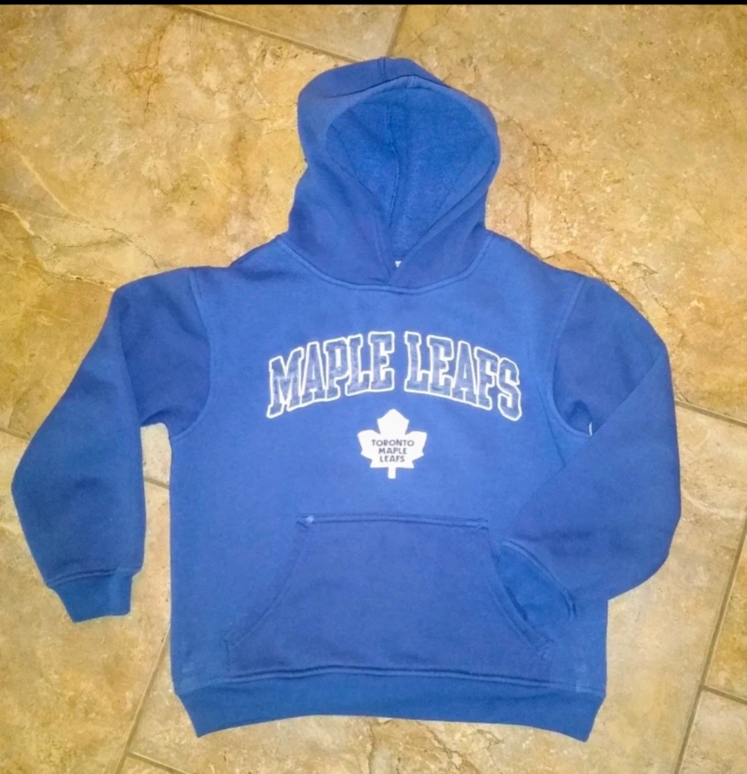 Genuine NHL merchandise Toronto Maple Leafs hoodie sweater with front pouch pockets and embroidered logo on the front.
