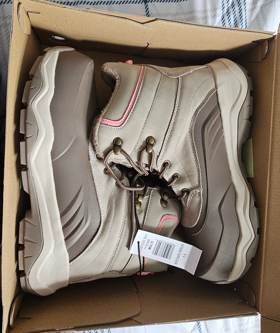 Brand New women's winter boots. Grey and brown colour. Lace-up style. Warm, waterproof, and comfortable. Great for snow and ice.