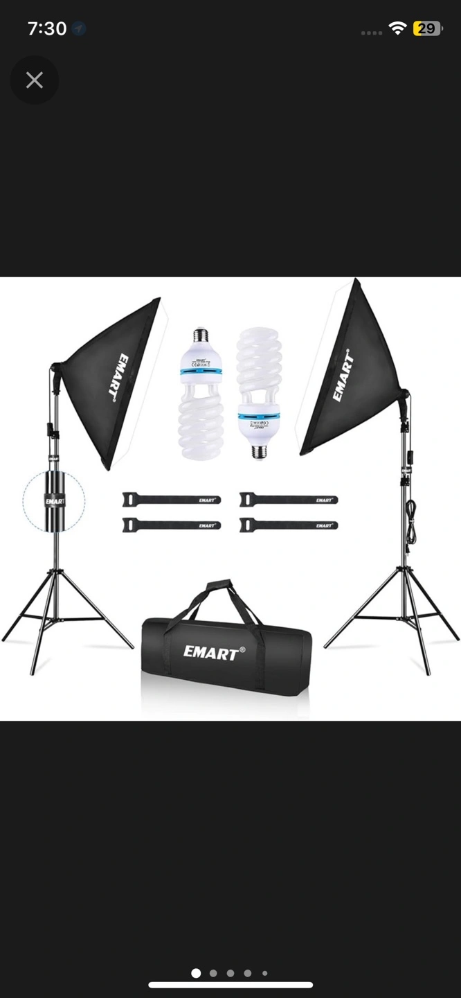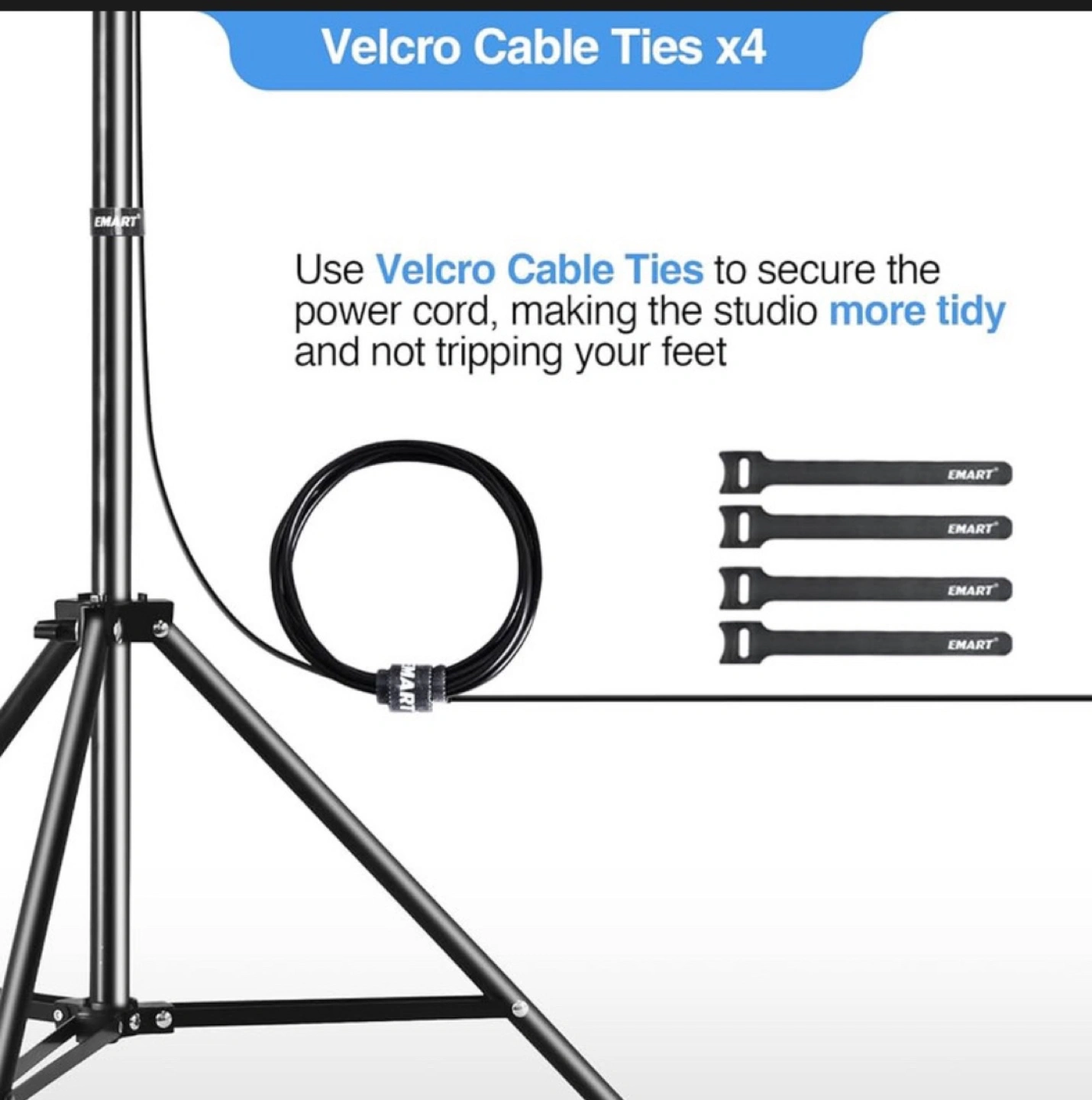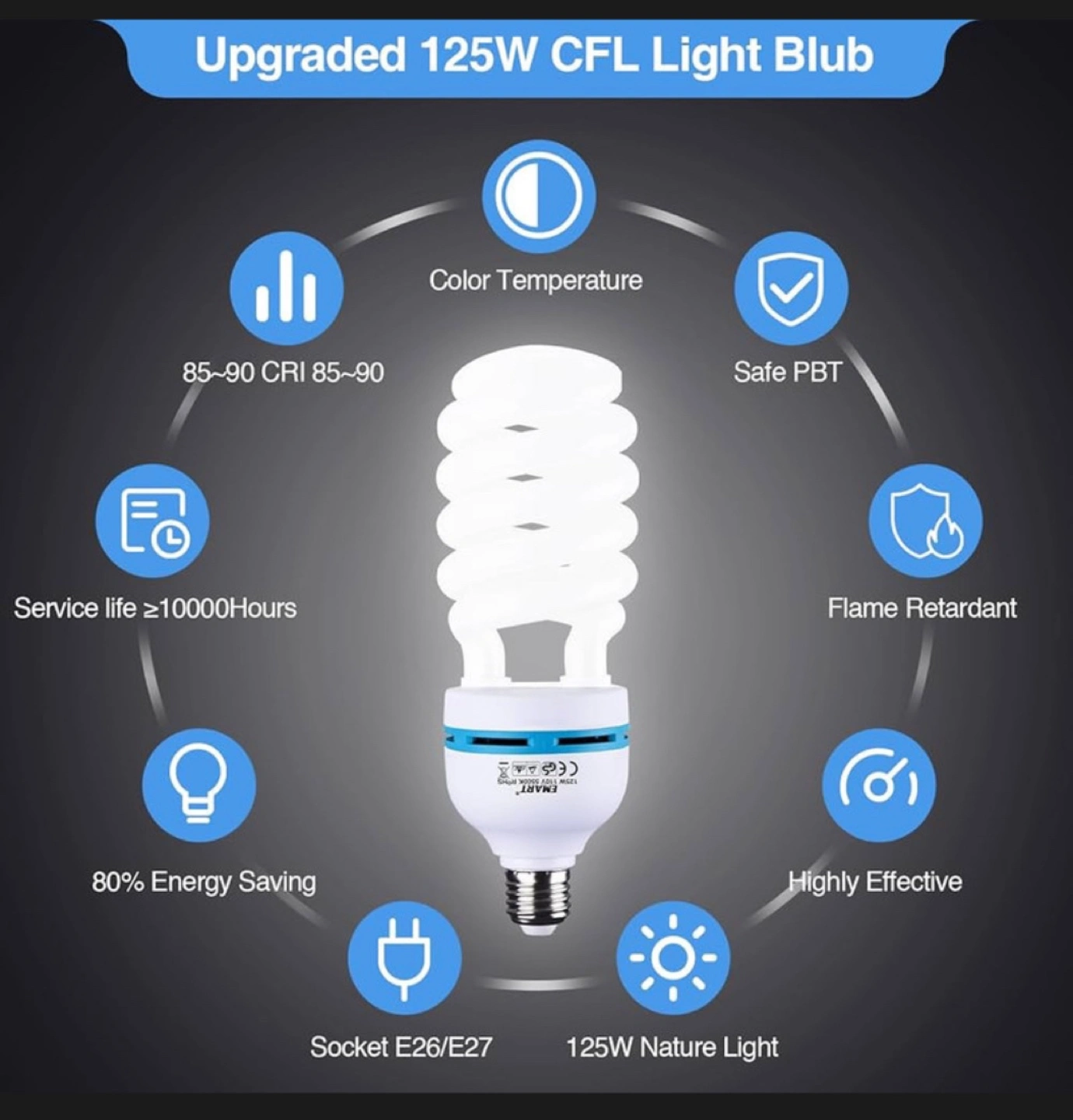 Rich packging content2 x 20"x 28" soft box;2 x E27 5500K 125W CFL light bulb;2 x (26.4" to 84.2")height-adjustable softbox light stand;2 x 210 rotatable head with 9.8ft(3M) power cable;4 x Velcro cable ties;;1 x portable tote from Oxford cloth. If you have any questions about our products please contact us we will reply you within 24 hours. Velcro Cable Ties x4Use Velcro Cable Ties to secure the power cord making the studio more tidy and not tripping your feet. 2 Upgraded SoftboxUpgraded softbox base - more hidden more solid. 20"x28" rectangular silver reflective inner lining cause a wide coverage. Also the softbox comes with a 210 rotatable head that can adjust the angle according to your needs and the removable front diffusion spreads light into a homogenous soft light. Reduces any harsh shadows that come into a subject that you are taking pictures. 2 Energy-saving bulbs2 x 125W 110V-50Hz 5500K daylight CFL lighting bulb the total output is equivalent to 1000W ordinary incandescent bulb low operating temperature and longer life CFLs will also help to make 80% savings on your energy bill. Multiple scene applicationsThis softbox light kit is suitable for photography art and meets the different needs of photography lighting live broadcasting video fill light etc.It can be applied to advertising products industrial technology photography portraits and product photography photographic reproduction etc