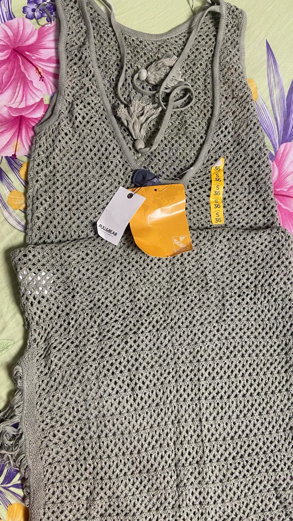 Selling a cute Pull&Bear knit tank top in size 36. It's in great condition and ready for a new home! The material is a breathable knit, perfect for warmer weather. It features a stylish design with tassel details.