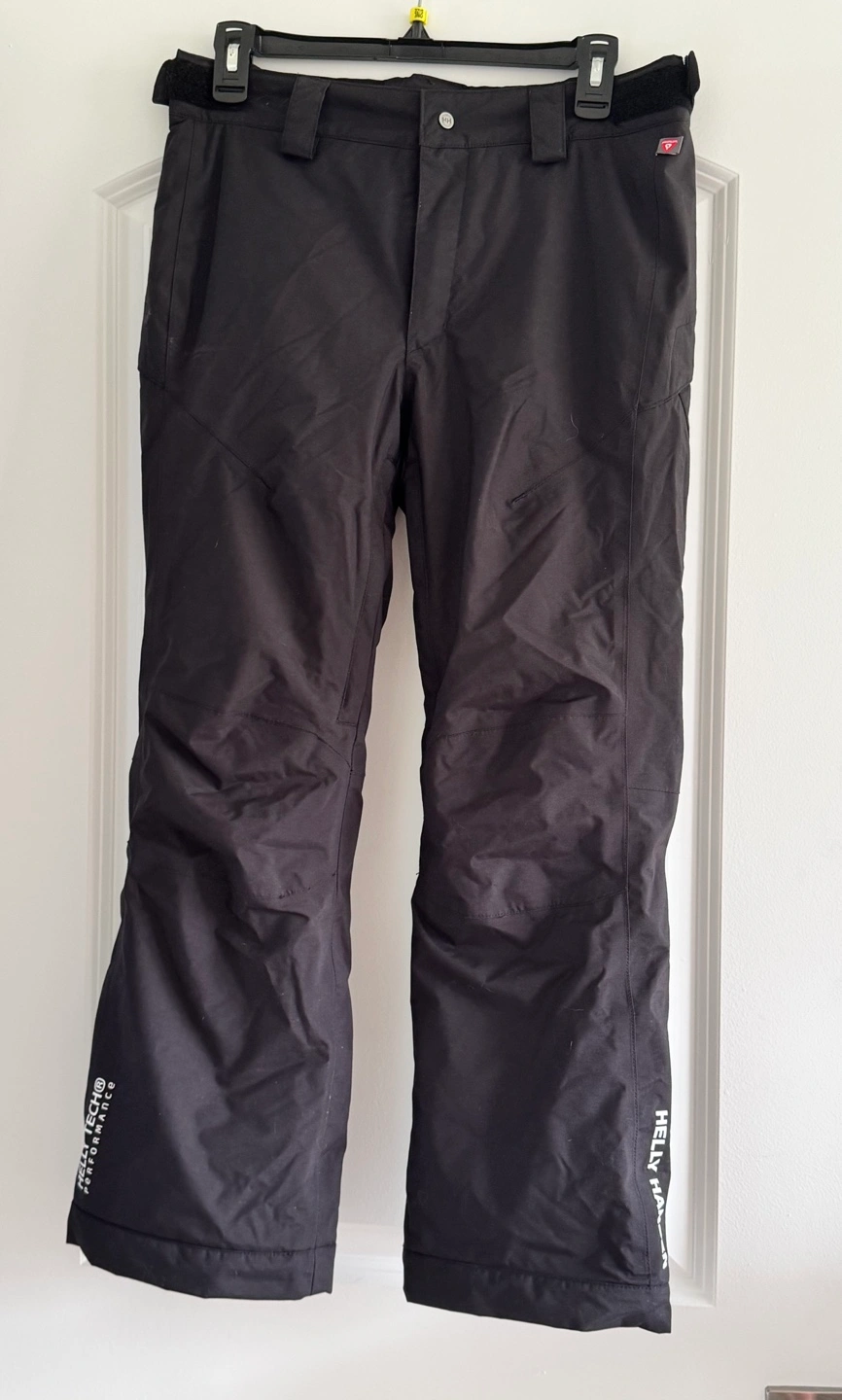 Women's black snow pants. Helly Tech® Performance fabric. Waterproof and breathable. Size 164/14. Designed and developed in Scandinavia.