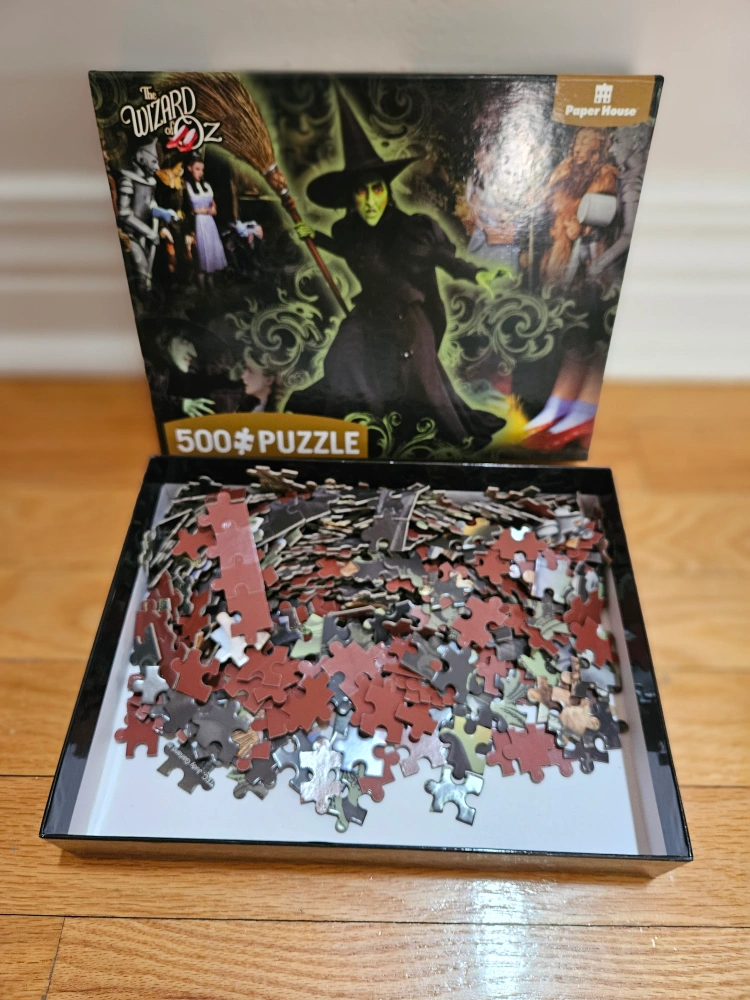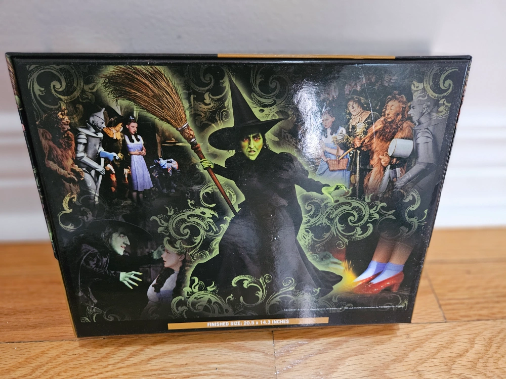 74500-piece jigsaw puzzle. Features Wicked Witch of the West. Image collage includes scenes and characters from the movie. Paper House brand. Puzzle is complete. only best offer pls.