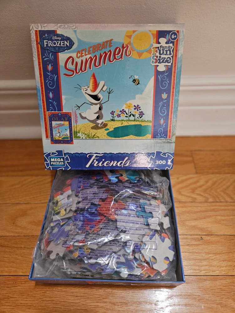 74300-piece jigsaw puzzle. Family fun size. Features Olaf celebrating summer. New, still in box. only best offer pls