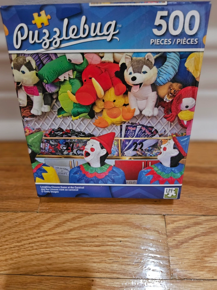 74500-piece jigsaw puzzle. Features laughing clowns and carnival prizes. New, in box. only best offer pls.