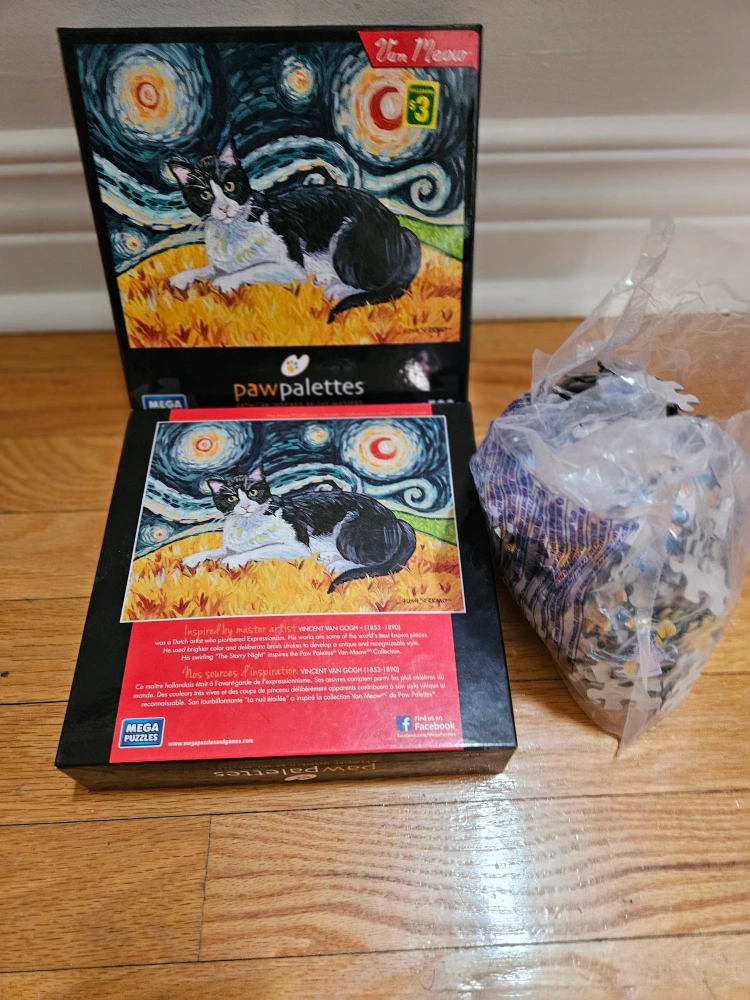 74300-piece jigsaw puzzle. Unopened, still in plastic bag. Features a tuxedo cat in a Starry Night-inspired design. Collectible. only best offer pls.