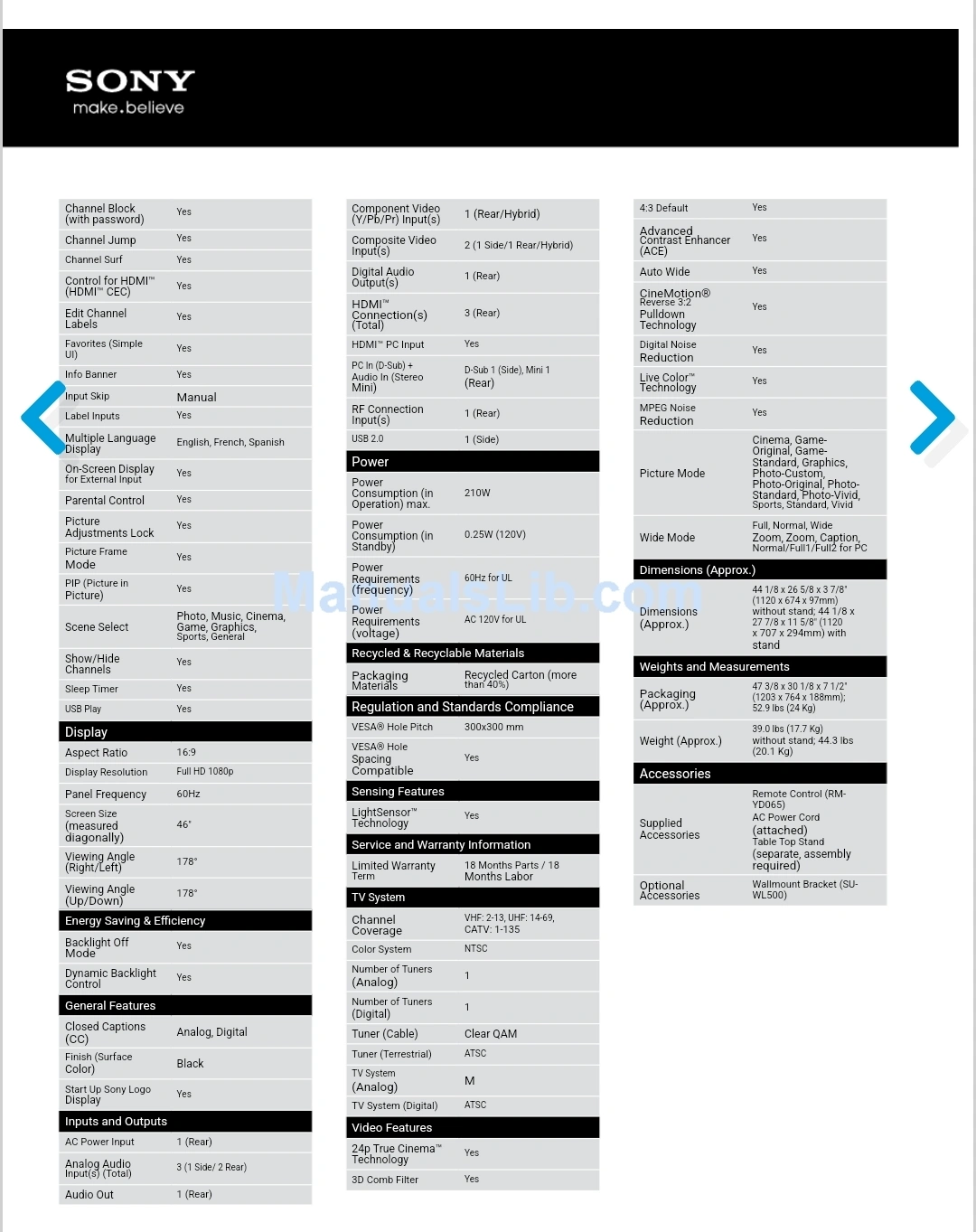 Sony 46" TV with wall mount