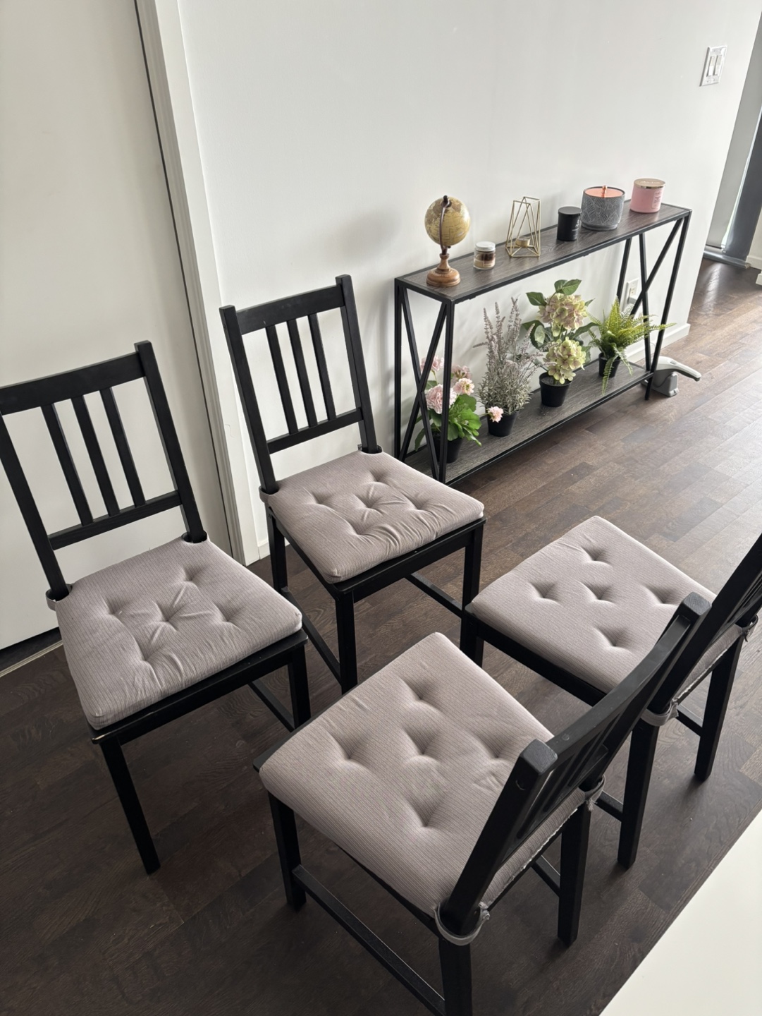 Set of 4 IKEA dining chairs, with seat cushioning included. Good condition with minor wear tear.