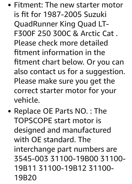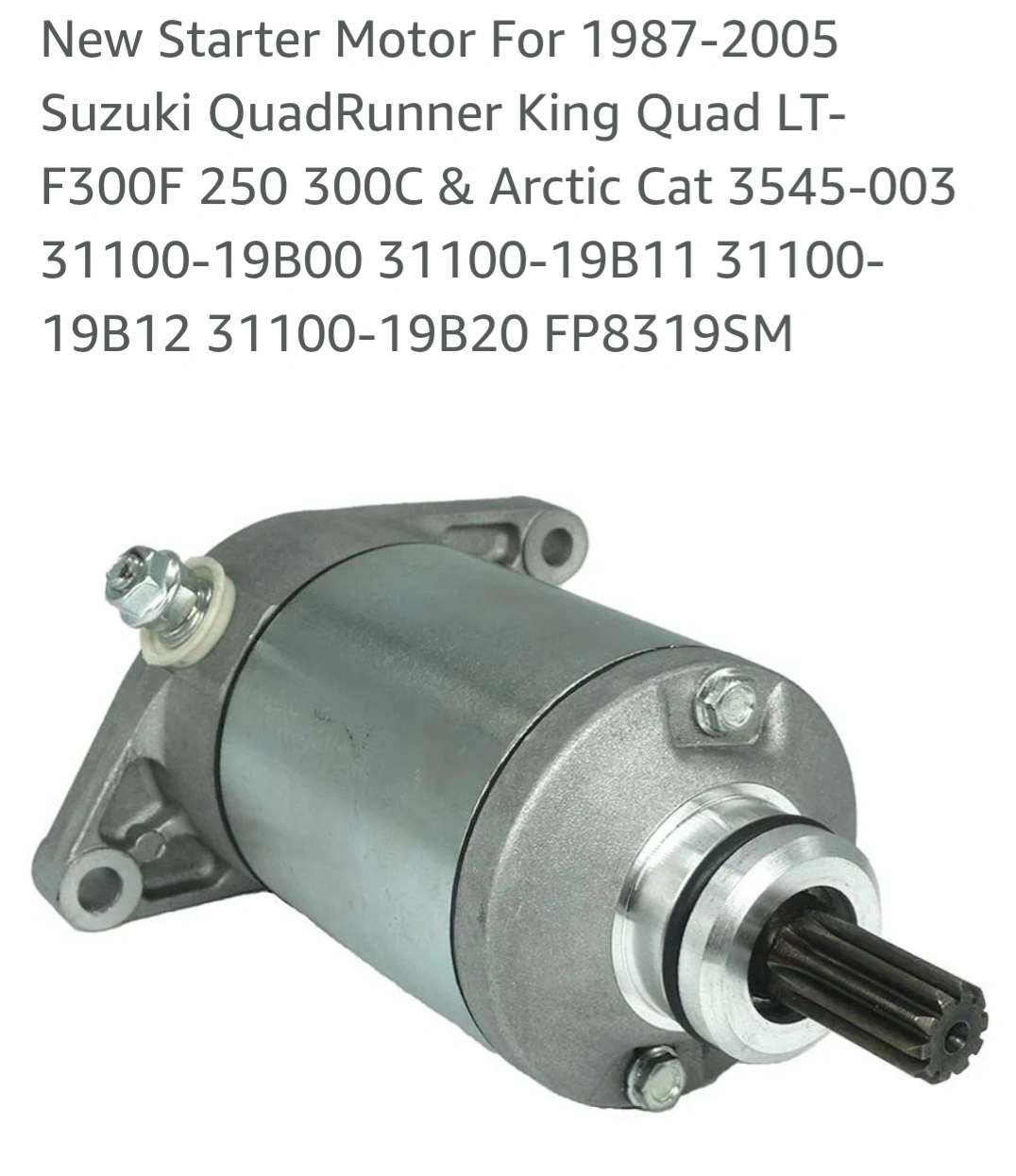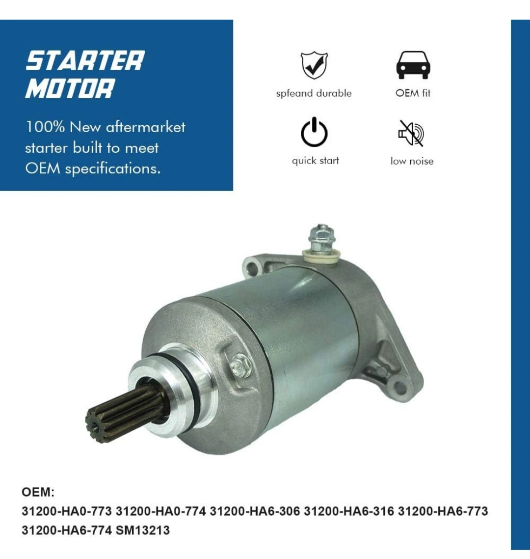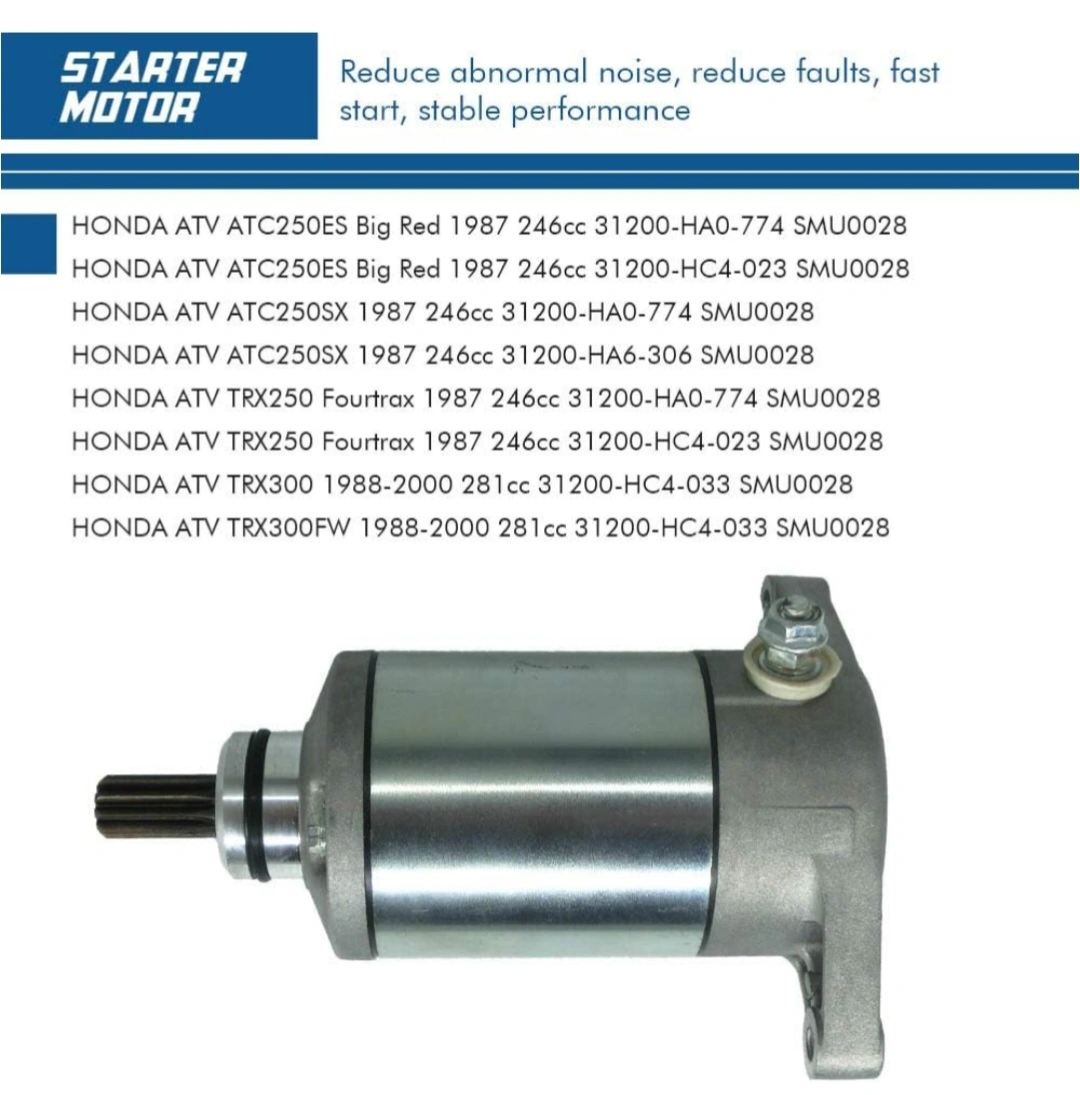 Brand NEW aftermarket STARTER MOTOR. OEM fit. Reduces abnormal noise and faults. Fast, stable performance. Quick start and low noise. Compatible with VARIOUS ATV models Including HONDA, SUZUKI, KING QUAD, QUADRUNNER, ARTIC CAT etc.