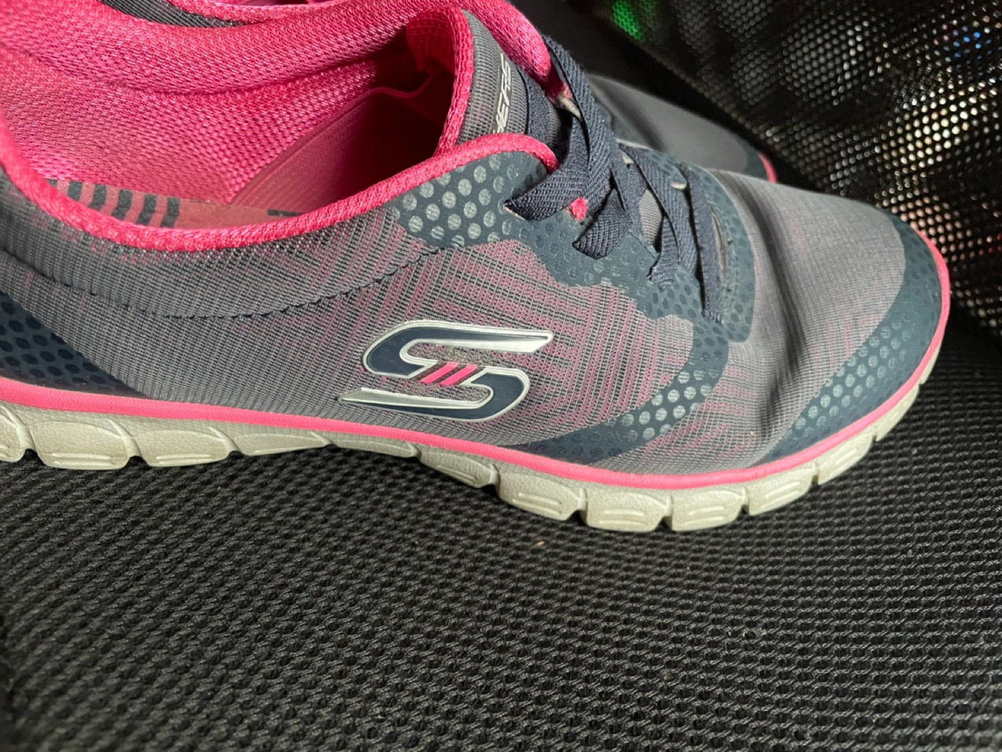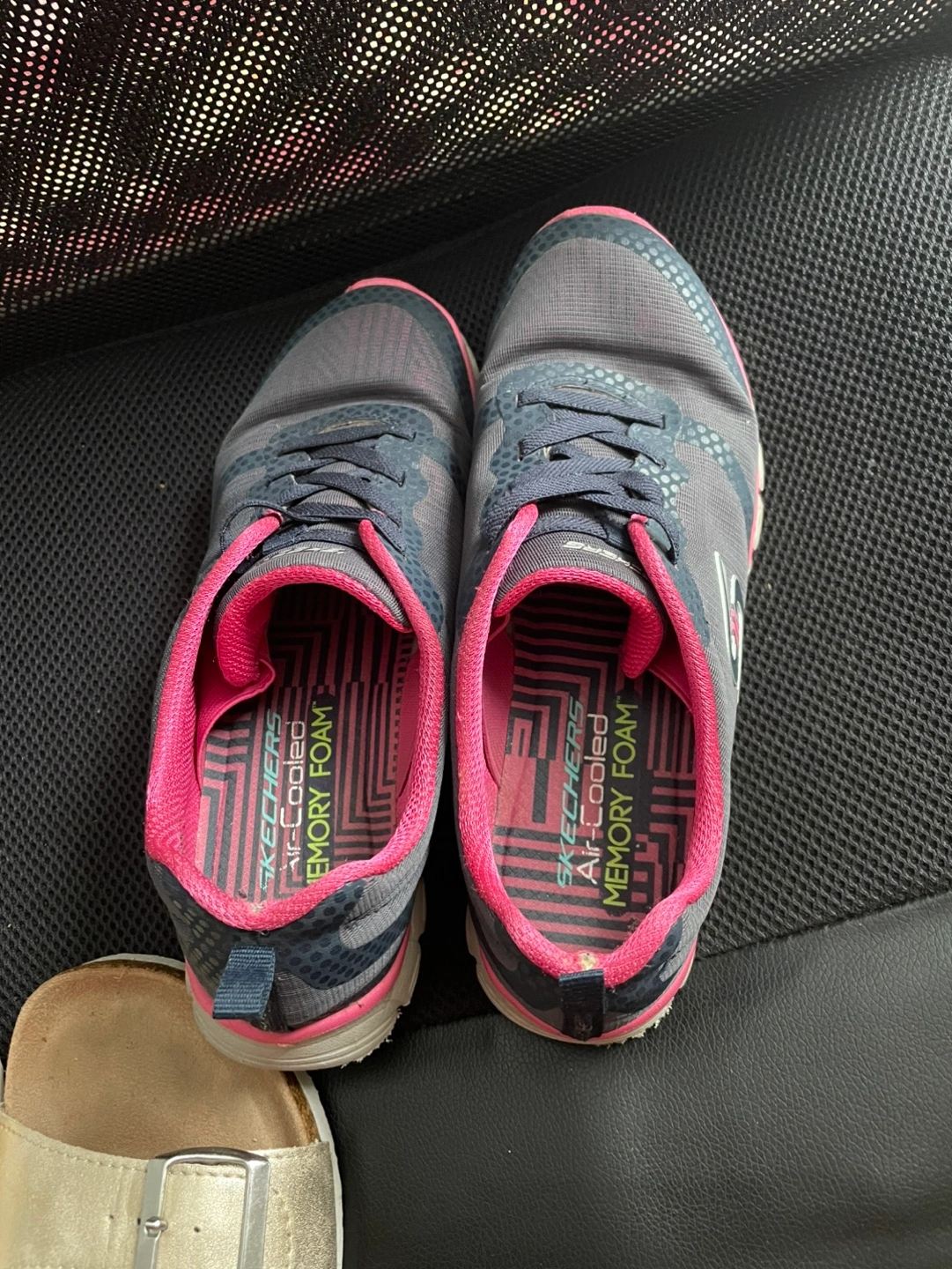 Women's running shoes. Grey and pink colour scheme. Air-cooled memory foam insoles. Lace-up closure. Good condition.